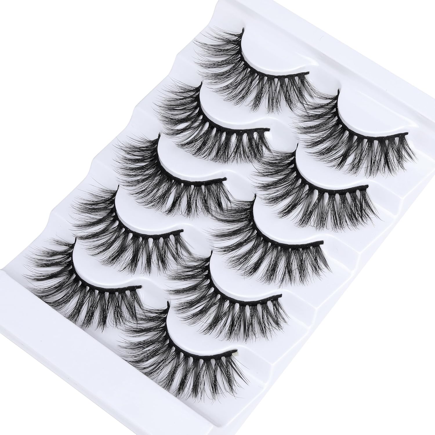 JIMIRE False Eyelashes Wispy Fluffy Round Eye Lashes 17mm Faux Mink Lashes 5D Mink Eyelashes 5 Pairs Pack