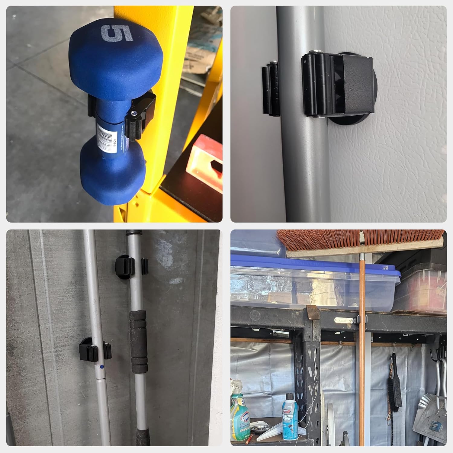- Non-scratch Broom Holder with Gripper: Anti-rust and anti-scratch, 8PCS magnetic mount heavy-duty magnetic mop holder can stick firmly to any ferrous metal surface and will not damage or scratch tool boxes, tool cabinets, or metal cabinets