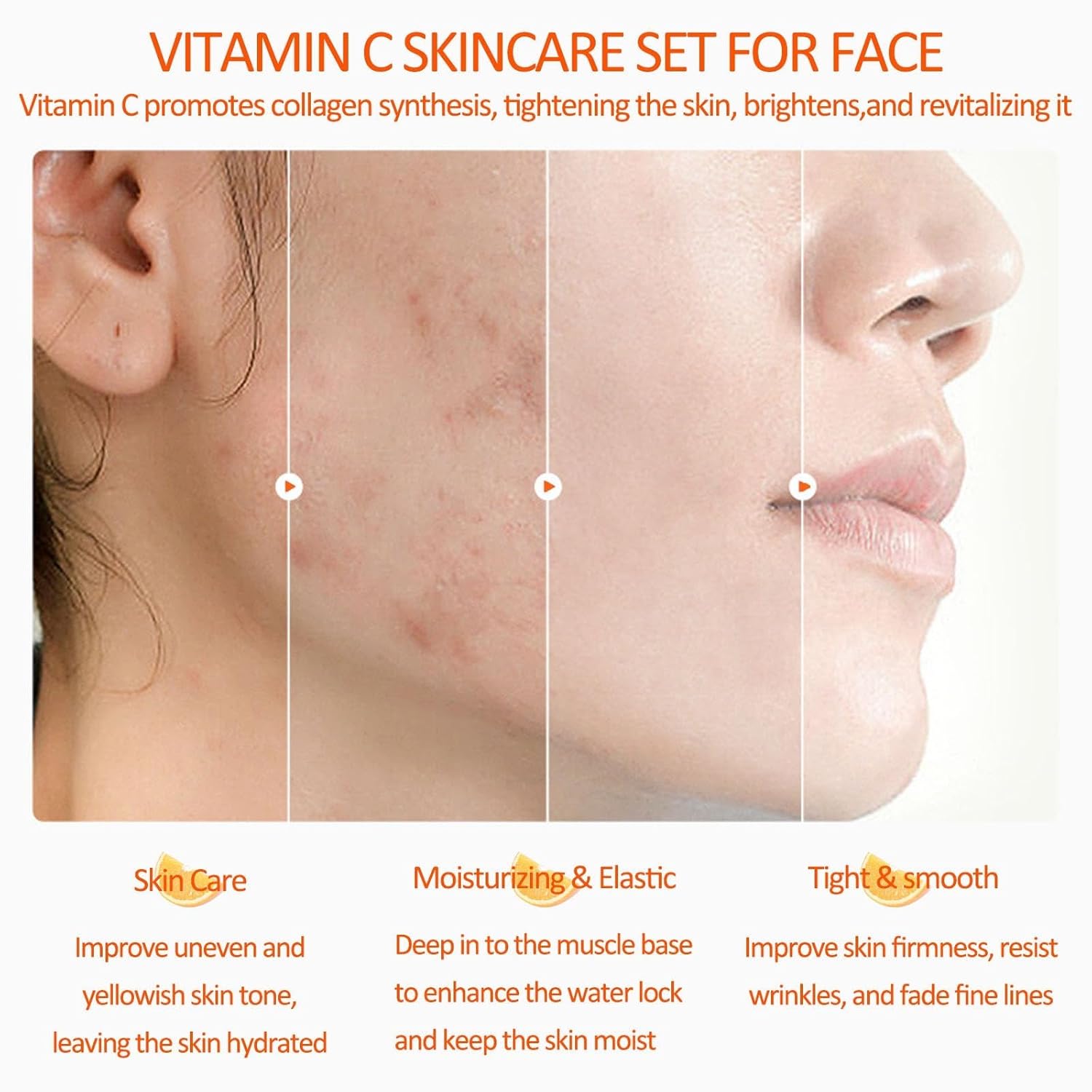 - 🌿【Vitamin C and Nourishing Formula】: a skincare product infused with a potent blend of a diverse array of plant extracts. This refreshing and non-greasy formula deeply nourishes the skin, enhancing texture, repairing damage, and fading fine lines. By promoting spot correction and overall rejuvenation, Vitamin C Skincare Set is your go-to solution for achieving radiant and revitalized skin, that leaves your complexion looking and feeling its best.