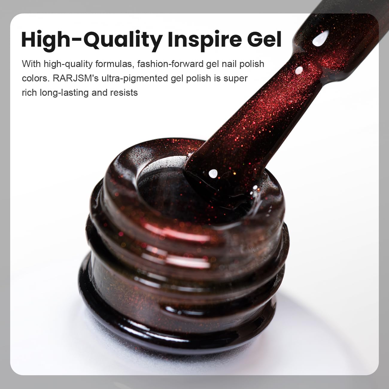 RARJSM Cat Eye Gel Nail Polish Dark Black Orange Red Cateye Diamond Glitter Gel Polish 15ml Single Bottle with Magnet Stick UV LED Curing Requires Soak Off for Home Salon Christmas Manicure
