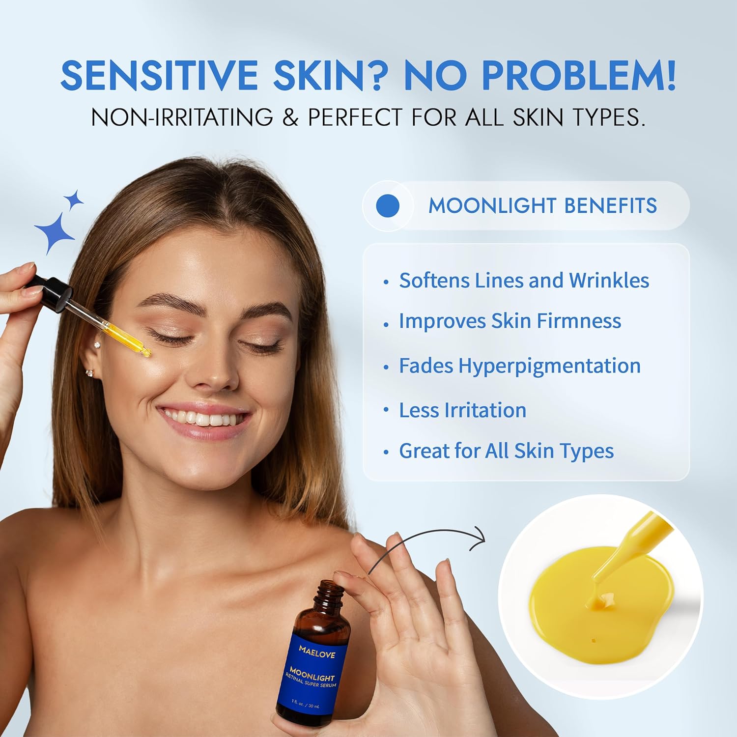 MAELOVE Moonlight Advanced Retinal Super Serum, 10x Stronger than Regular Retinol, for Softening Lines and Wrinkles, Reducing Dark Spots, Improving Skin Firmness, Vegan, Cruelty-Free, 1.0 fl oz