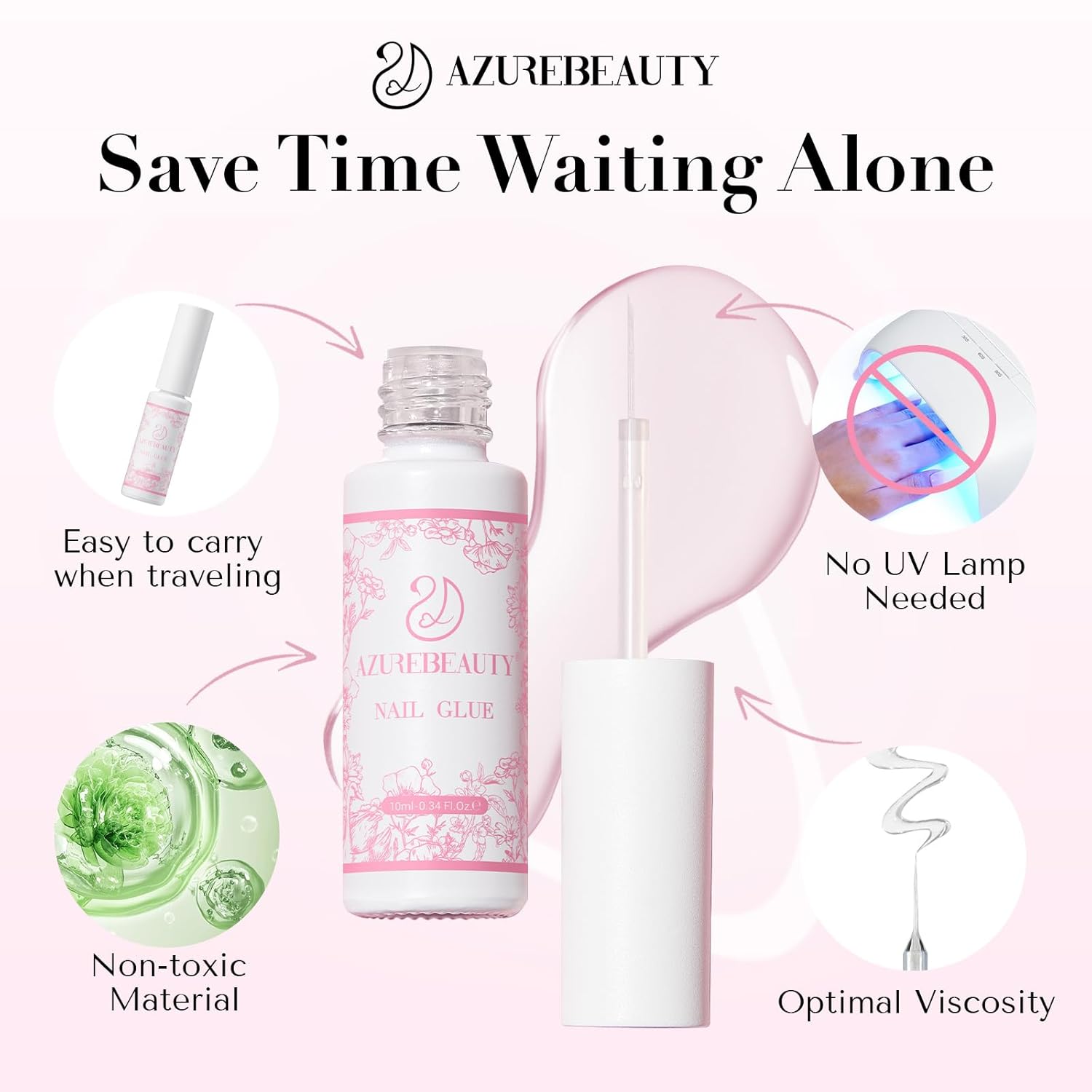 - No need for UV light & Quick Dry:It can bond without the need for an ultraviolet lamp and is convenient to carry. The brush head is fine to 0.5 inches, which can be precisely applied to all parts of the nails