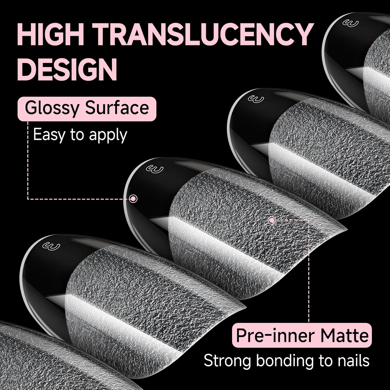 - 💖HALF MATTE OVAL FAKE NAILS-Our short round nail tips pre-shape half matte saving design, no extra filing required! The clear oval nails surface with a glossy finish for easier to color. The inner deep matte firmly adheres to the nail without worrying about the nail pop off easily. Easily get beauty that lasts 28+ days. We are committed to bringing you professional, efficient and safe nail care.