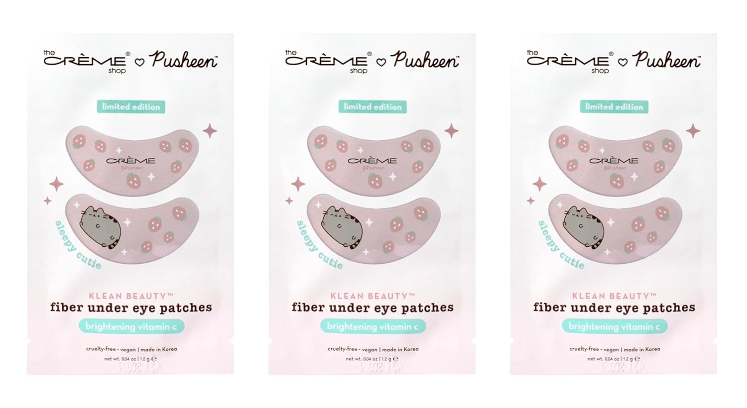 The Crème Shop X PUSHEEN KLEAN BEAUTY™ Fiber Under Eye Patches | Vitamin C Infused for Brightening | Cooling & Moisturizing | Set of 3 Pairs | Vegan & Cruelty-Free (Set of 3)