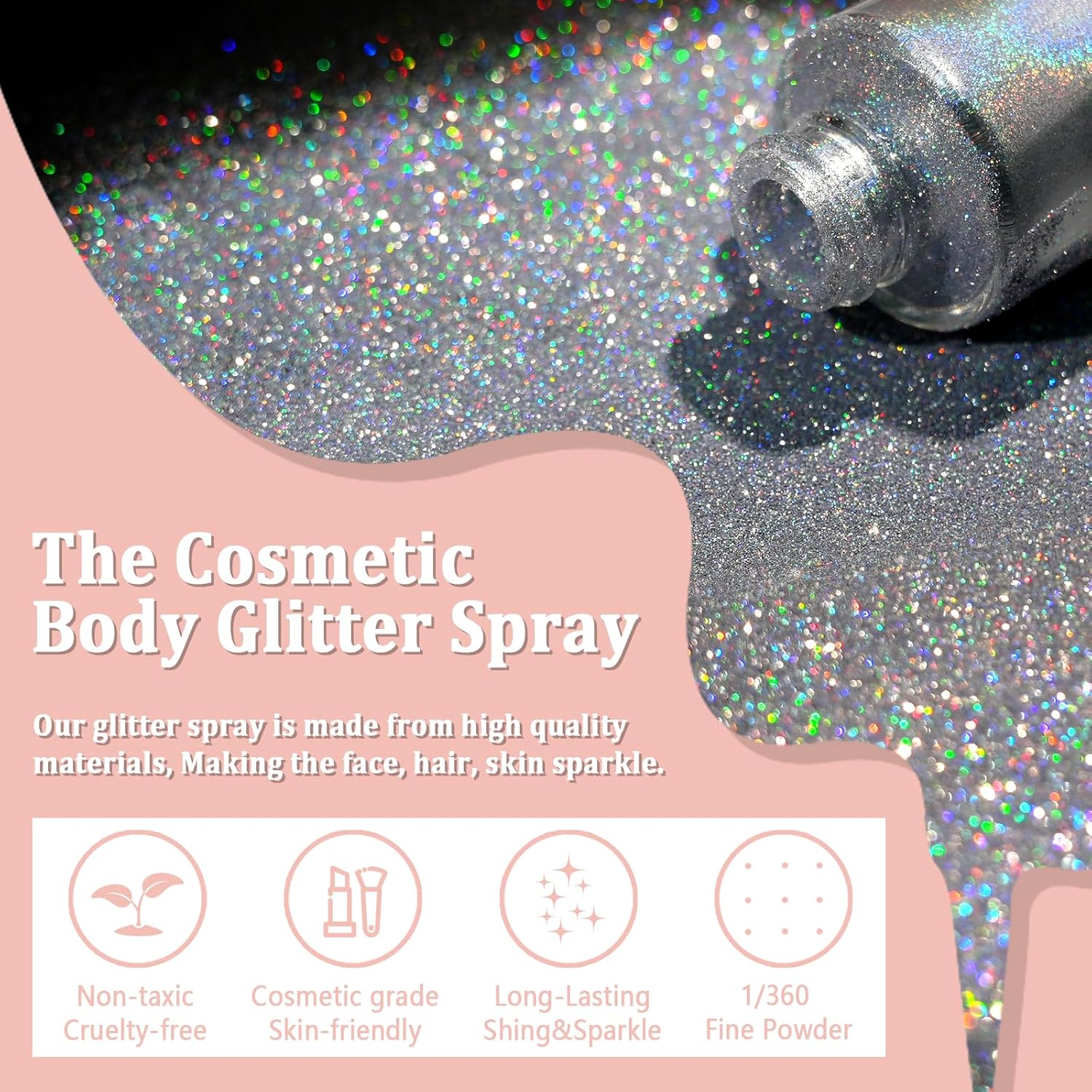 - High-quality Glitter Spray: Our body glitter for women is made from high-quality materials that are friendly to all skin types and tones with a lightweight, cruelty-free, ultra-fine glitter powder texture that is skin-friendly. This glitter body spray offers long-lasting sparkling effect, but our body spray glitter set includes 1 glitter spray and 1 glitter glue. With a variety of vibrant colors to choose from, the face glitter can help you to achieve the stunning sparkle effect.