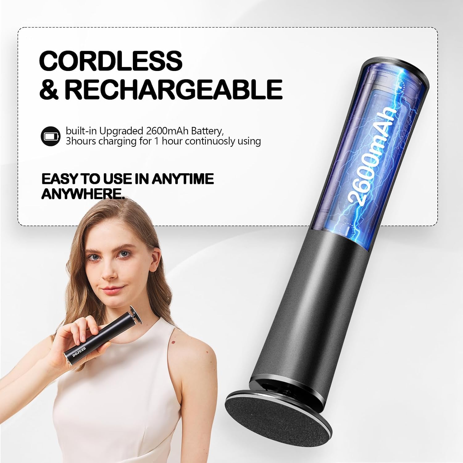 - RECHARGEABLE DESIGN,WIRELESS ENJOYMENT: Efficient foot pedicure tool to support plug-and-play,simply recharge the battery for 2-3 hours ,then can be used up to 1 hour.The wireless design made it easy to use in anytime and anywhere.