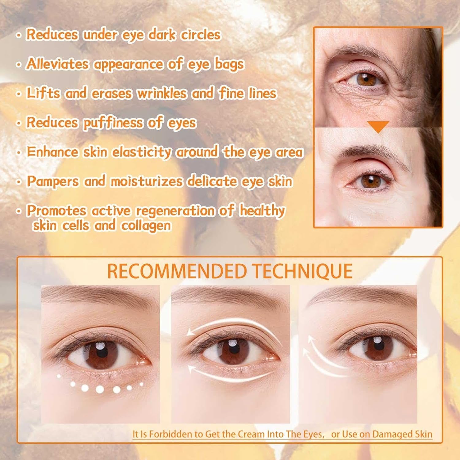 - Anti-Aging Eye Cream: Our VC-based eye cream targets fine lines, wrinkles and crow's feet, while reducing skin dullness and tiredness for a more youthful appearance.