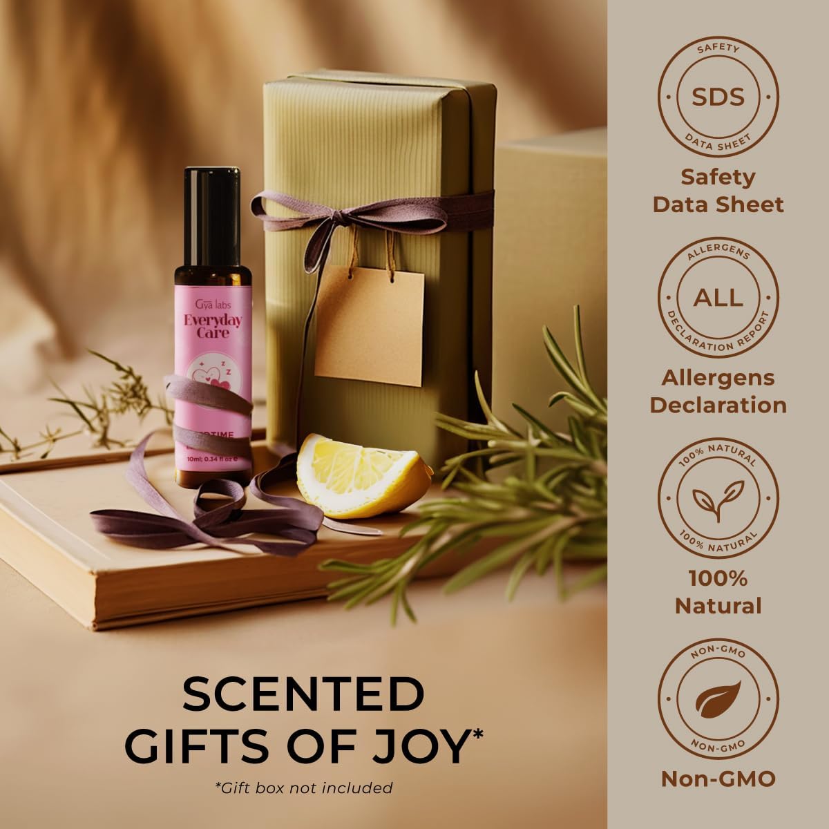 - Expertly Bottled & Packaged. Gya Labsβ Bedtime Oil Roll On is packaged in a glass amber bottle to ensure purity. Our Gya Labs essential oil roll on are also carefully handled, not tested on animals and undergo strict quality control .