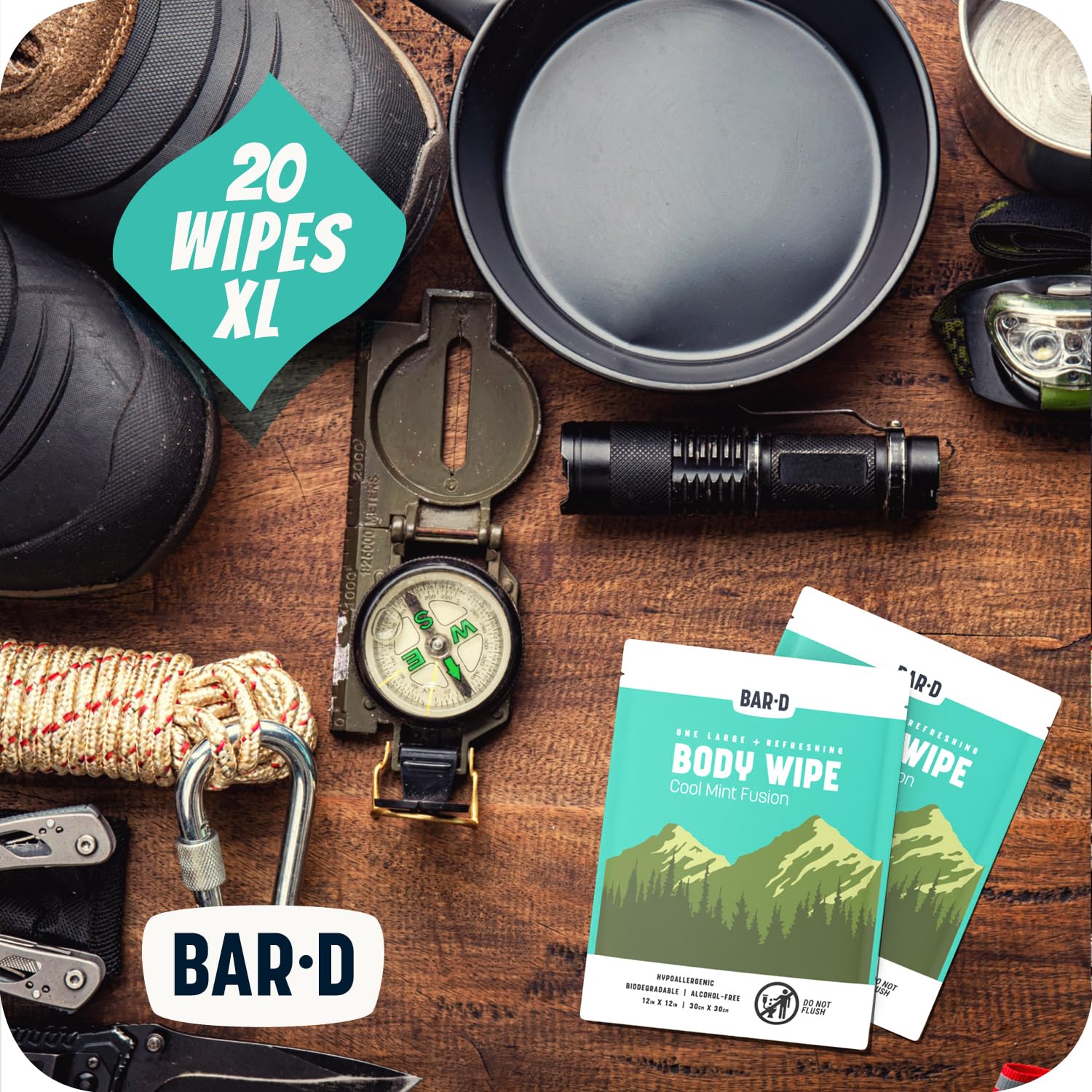- Can't shower? Need a bath? Extra large and thick biodegradable body wipes are what you need! Wipe down your entire body. Face, armpits, undercarriage. Great travel gear, camping accessory, and a hiking must have!