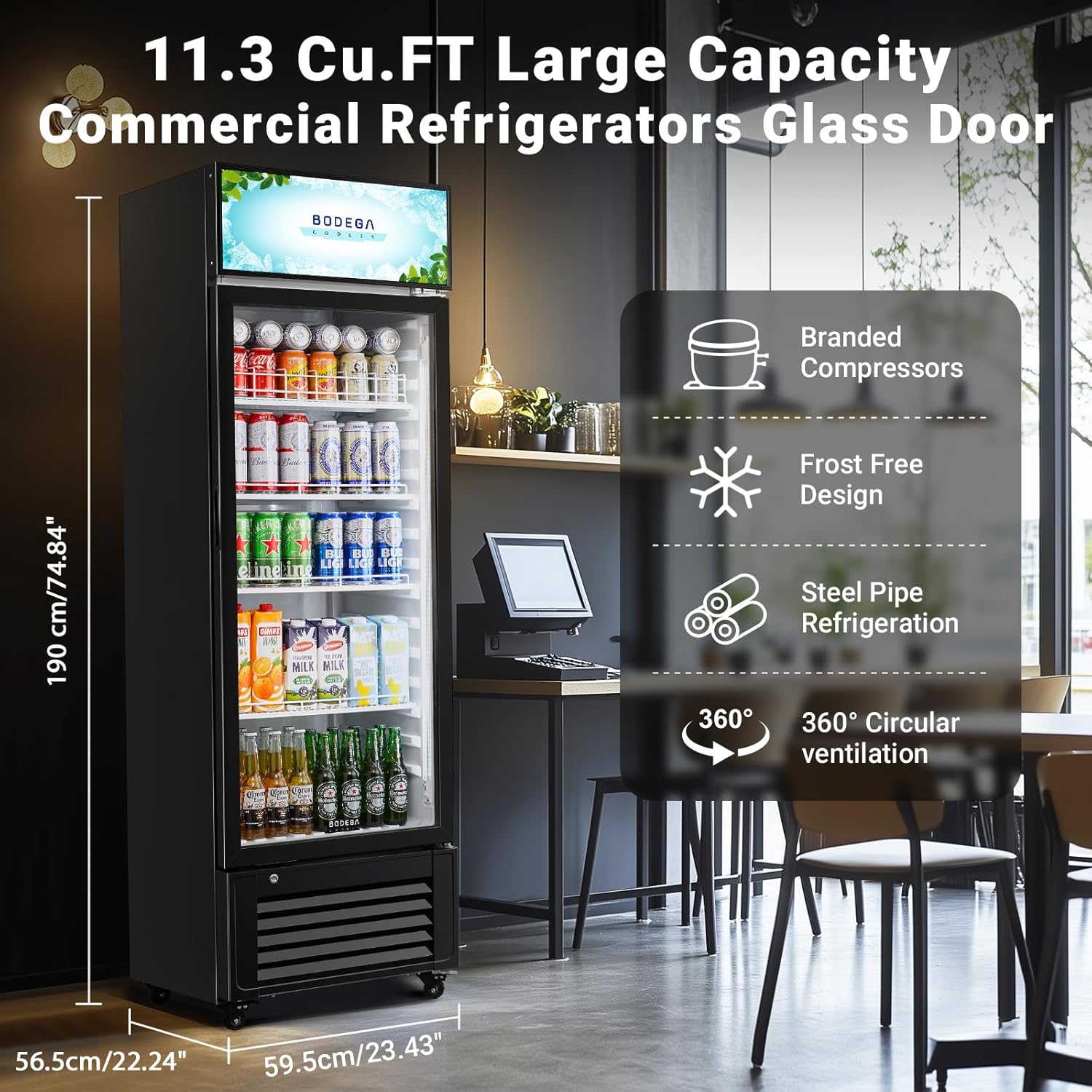 - 【Spacious Commercial Refrigerators】 BODEGACOOLER commercial display refrigerator features a spacious 11.3 Cu. Ft. of space and 4 removable shelves (including 1 drink organizers). The Commercial Merchandiser Refrigerator's adjustable shelves are ergonomically designed to allow you to easily adjust the internal height structure. Display fridge can also be used as back bar cooler, allowing you to easily display a variety of items to better catch the eye of your customers.