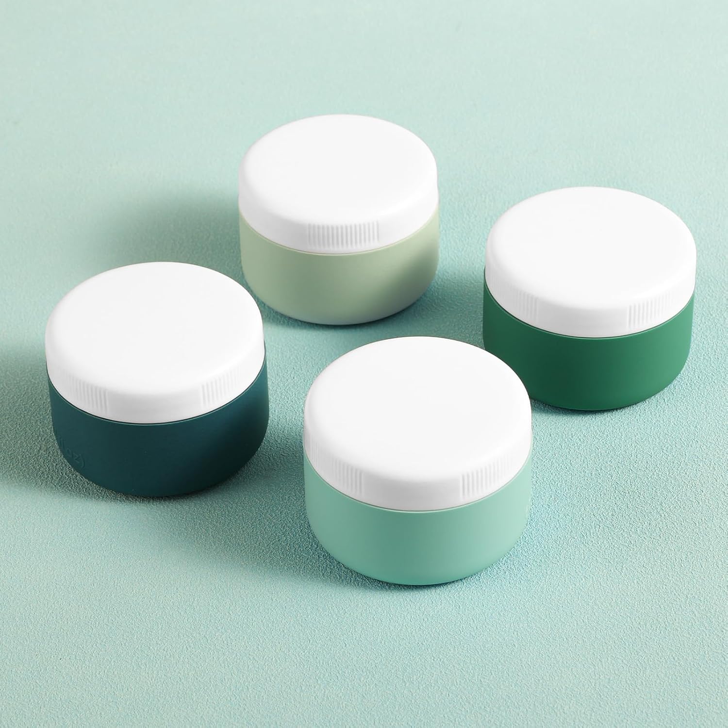 Travel Containers for Toiletries, Silicone Cream Jars BPA-Free, Leak-proof 2oz Travel Size Containers, Portable Size Silicone Jars with Lid for Cosmetic Face Hand Body Cream (4 Pack)