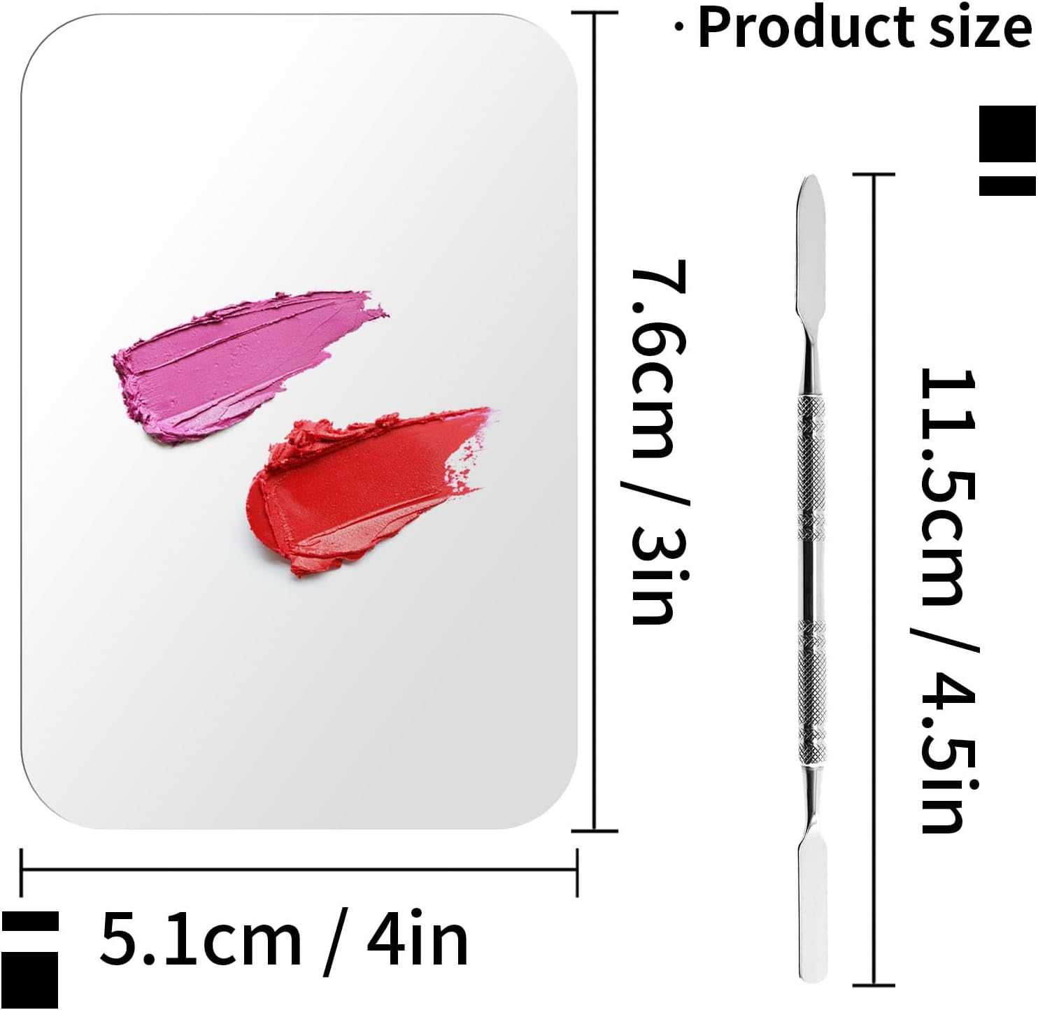 - Package Contents: The makeup palettes set contains 1PC stainless steel foundation palette and 1PC stainless steel makeup spatula.