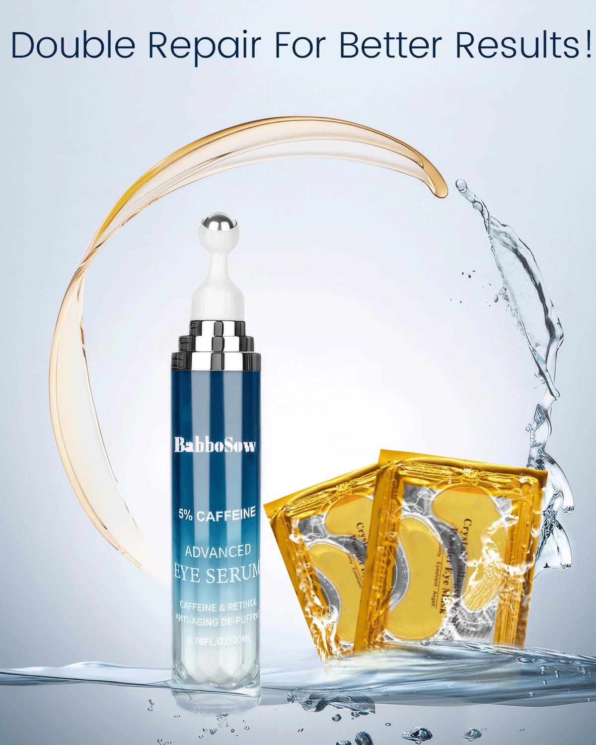 Caffeine Eye Cream and 24K Gold Eye Mask (20 pcs): Under Eye Serum for Dark Circles and Puffiness Eye Care Eye Serum Anti Aging with 360° Massage Ball Reduce Eye Bags, Wrinkles and Fine Lines