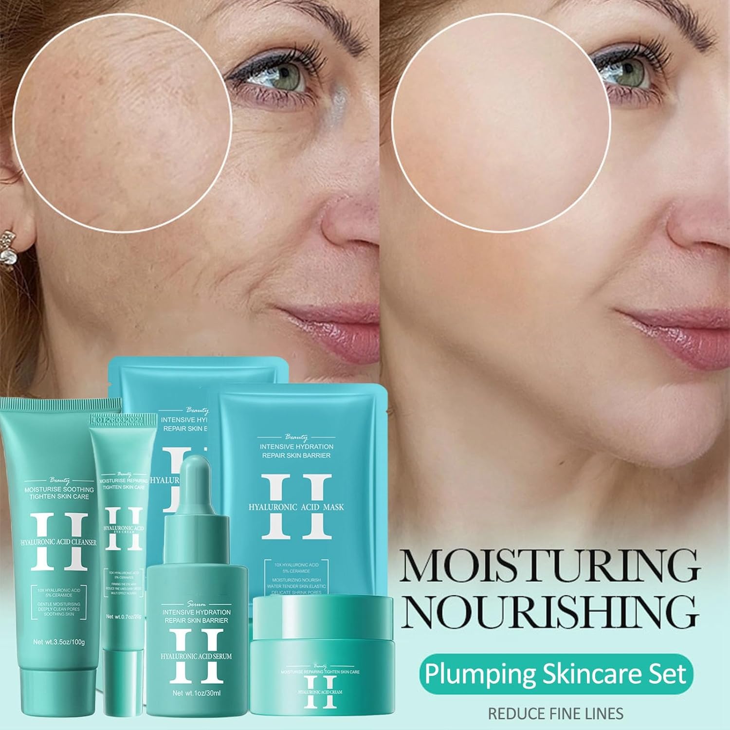 - 【Hydrating Facial Kit For Women】- The skincare set begins to create your youthful skin: hyaluronic-acid and allantoin help moisturize and plump the skin, glycerin and mineral oil help establish the skin's water barrier, immediately soothing dehydrated and sensitive skin.