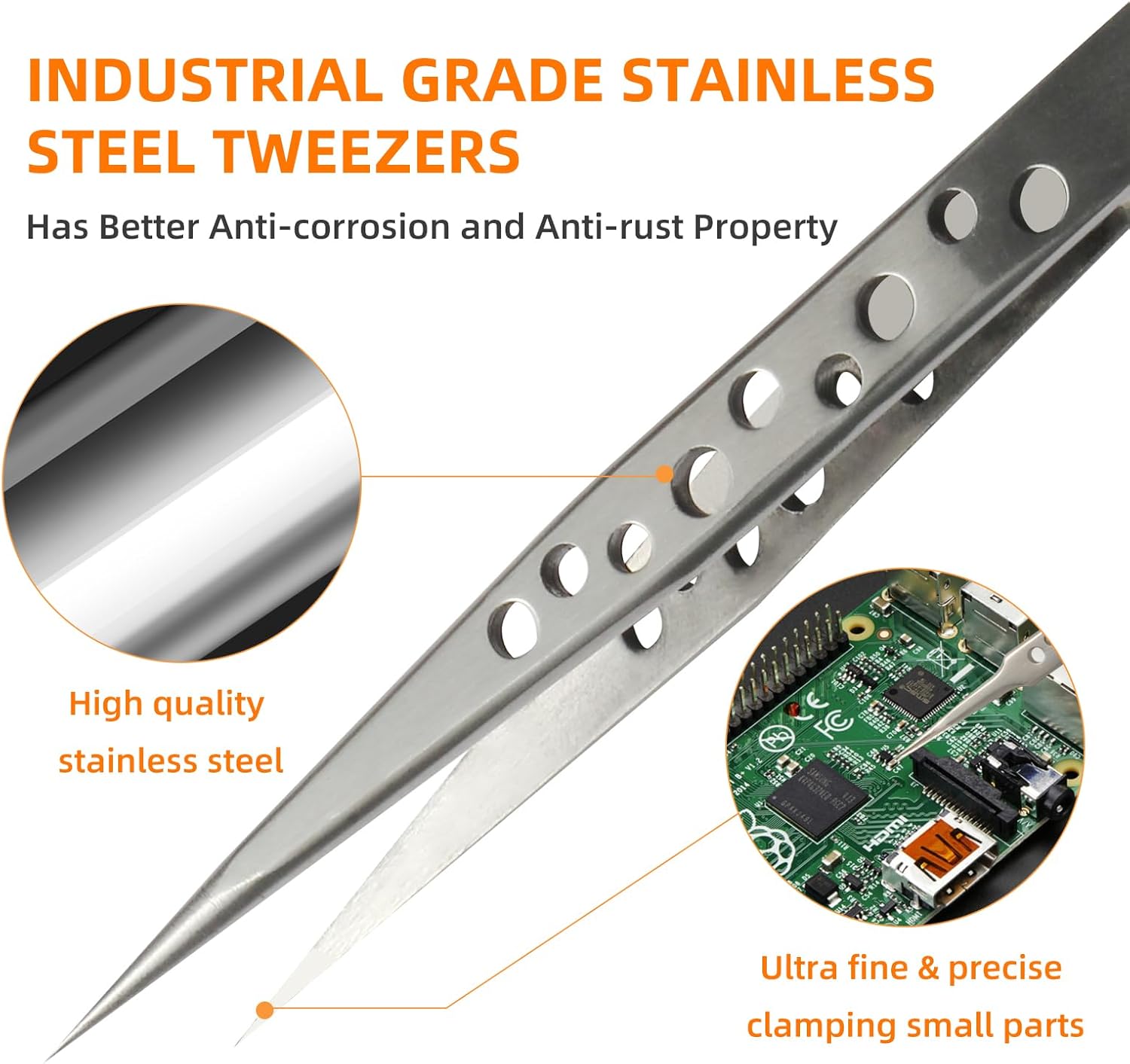 - β Precision tweezer set made of high quality stainless steel, wear-resisting, rust protection, anti-corrosion; Frosted surface, nine-hole hollow design, anti-skid function. The teweezer tips are accurately aligned with anti-skid handle which can hold the tiny things precisely, making the effect better, give you a better feeling.