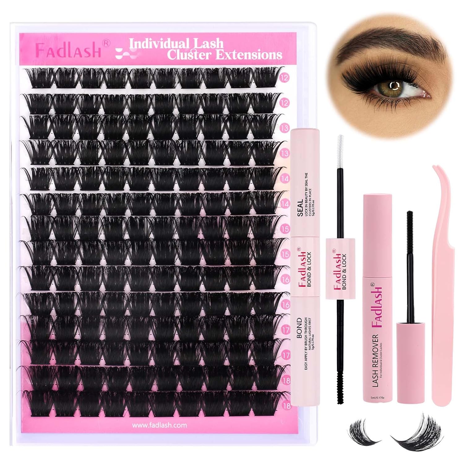 - 【DIY lash extension Kit】:DIY lash extension kit includes:1 tray mix length cluster lashes,1 lash bond and seal(2 in 1),1 Cluster Lashes Glue Remover1 lash applicator tweezer. Our DIY lashes kit includes all the necessary tools. Achieving the perfect extension look with our DIY eyelash extension kit