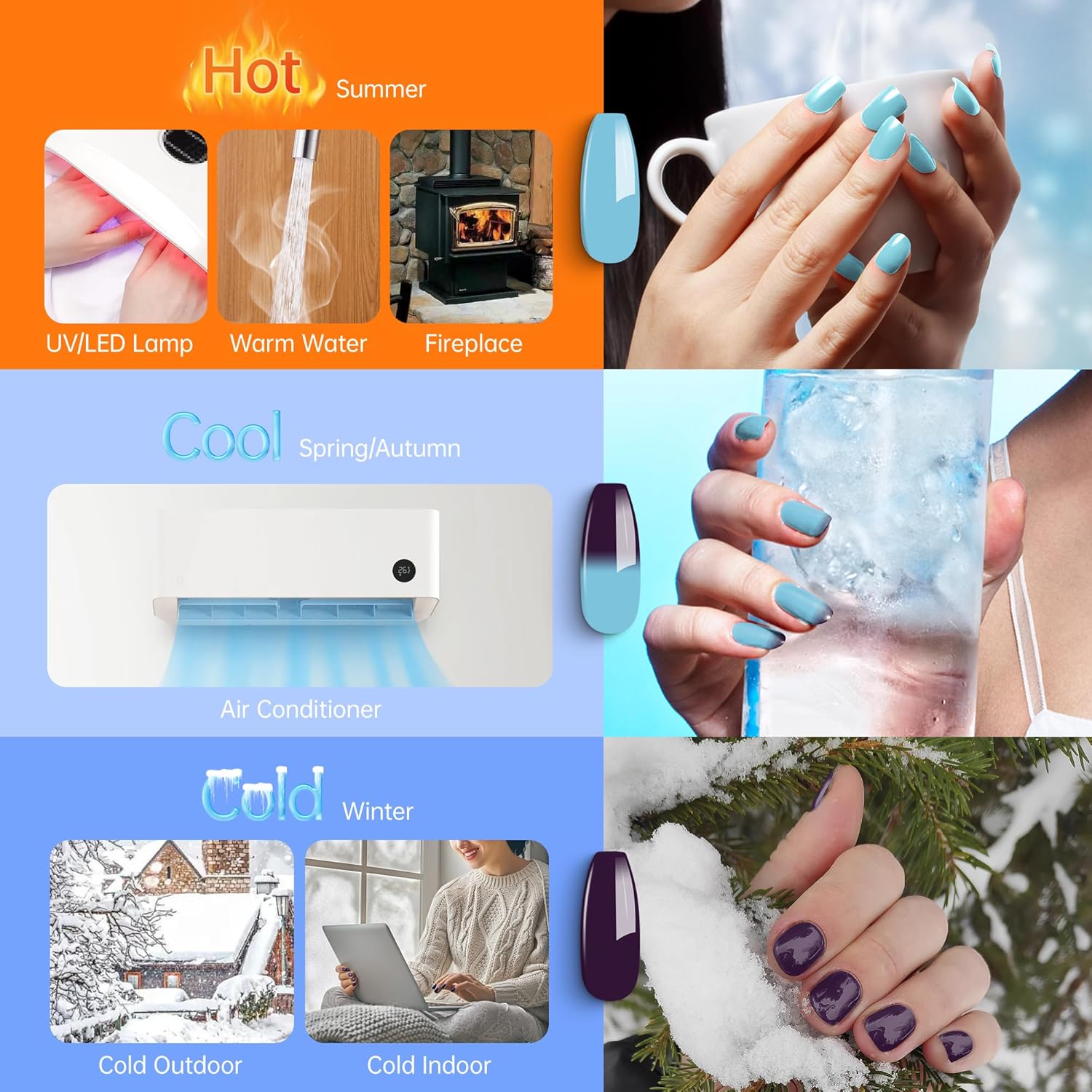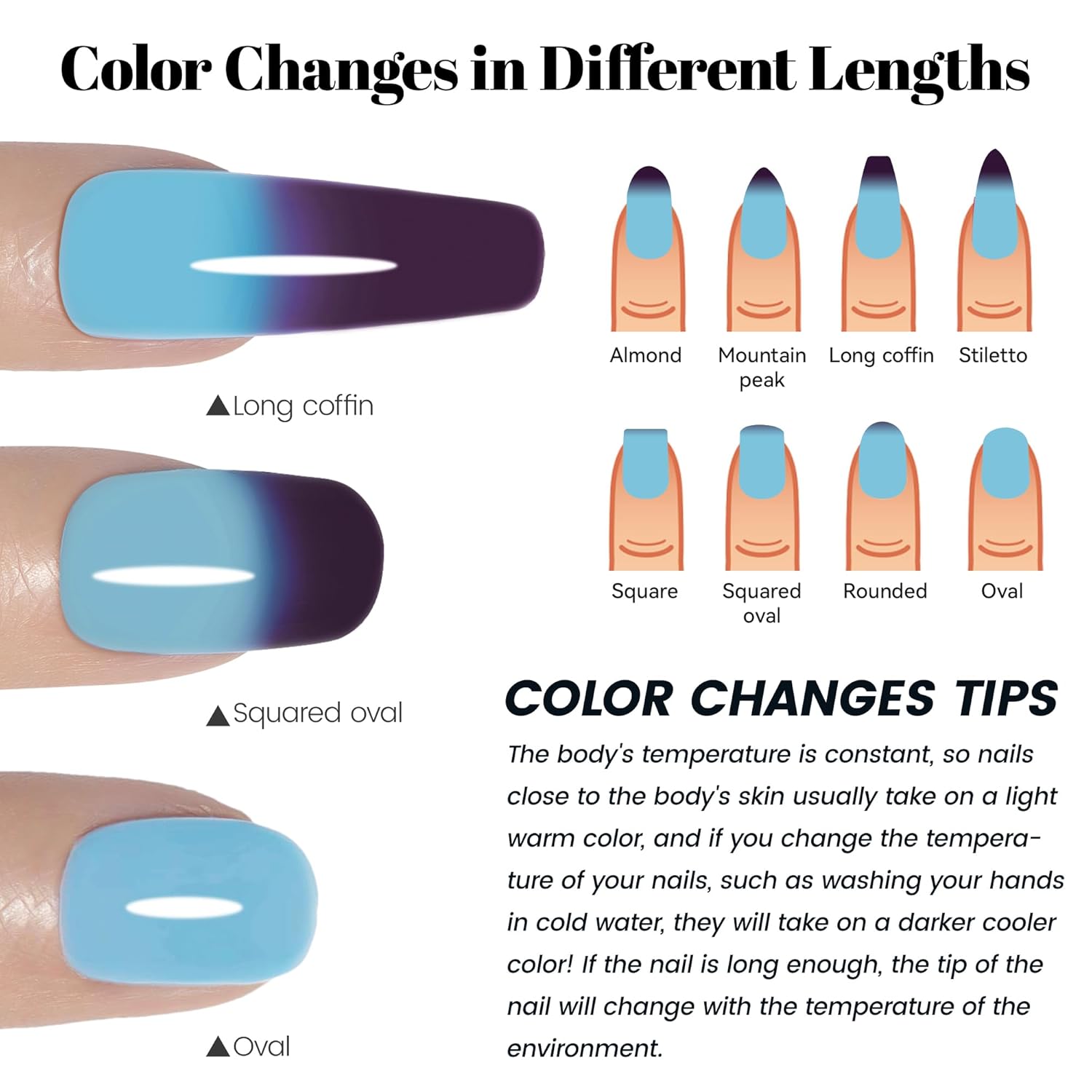 YTD Likomey Color Changing Gel Nail Polish,15ml Blue To Deep Purple Mood Temperature Change Colors Fall Winter Thermal Ombre Manicure UV Varnish,WB429