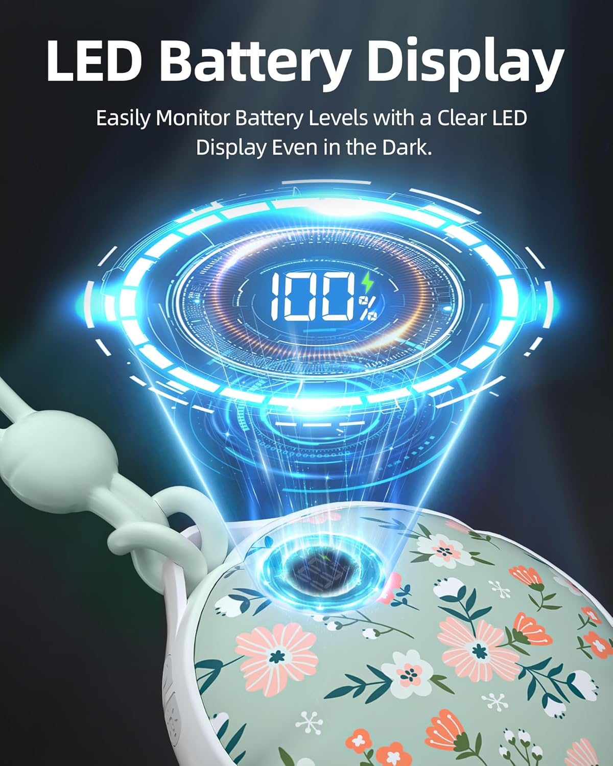 - LED Display and Built-In Illumination: Never be left in the dark with FrSara electronic hand warmer about your battery status with the clear, easy-to-read LED display. Plus, the integrated night light adds a touch of practicality, perfect for finding your way in low-light situations or adding visibility during nighttime outdoor activities.