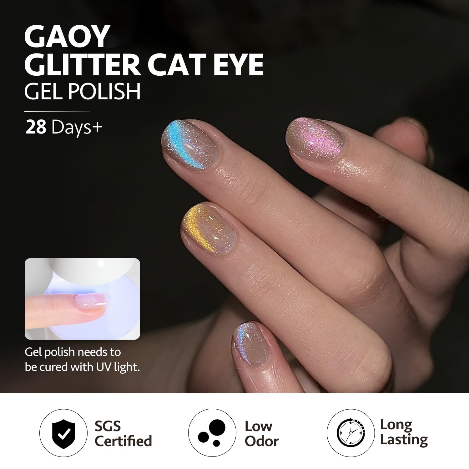 GAOY Cat Eye Gel Nail Polish Set with Magnet for Blue Glitter Holographic Cat Eye, Salon Gel Manicure and Nail Art DIY at Home, Mermaid's Tears