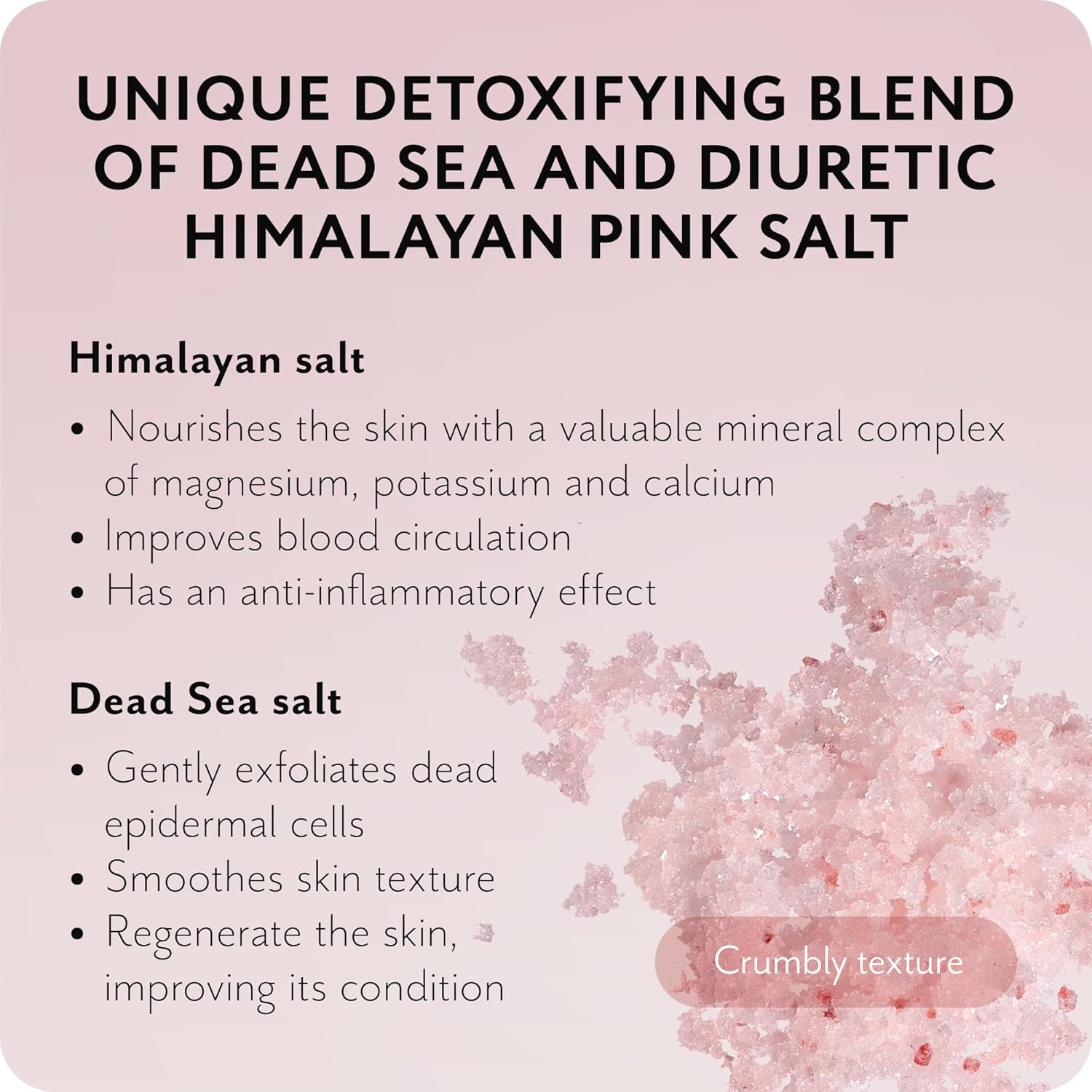 - π¦ Effective Swelling Reduction and Drainage: The coarse salt texture helps remove excess fluid from tissues, which is especially important after physical activity. This effect reduces swelling and heaviness, making the exfoliating scrub an essential tool after long days or intense workouts.