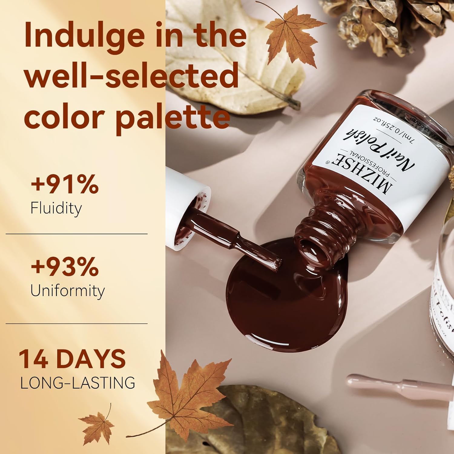 MIZHSE Brown Nail Polish Set - 6 Colors Nude White Glitter Winter Collection Quick Dry DIY Nail Art Salon Gift For Women