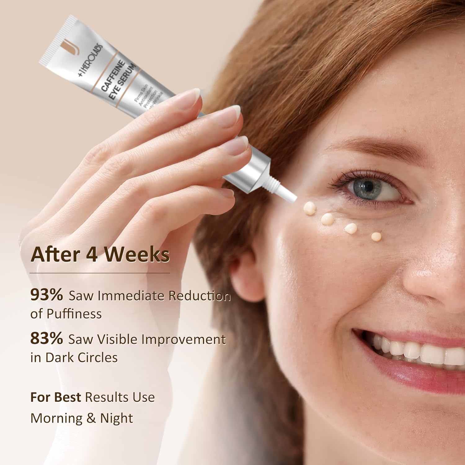 Caffeine Eye Cream with Niacinamide, Hyaluronic Acid, Vitamin E & Peptides - Under Eye Serum for Puffiness and Dark Circles, 0.7 Fl Oz (Pack of 2)