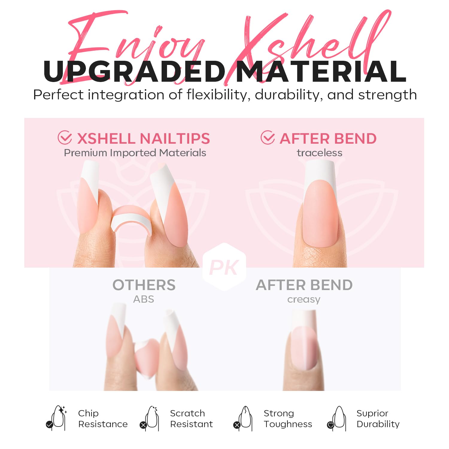 - Timeless French Design: Elevate your style with classic French featuring a natural, crystal-clear appearance. Ultra-thin edges (0.1mm) provide a snug fit, while reinforced tips (0.8mm) deliver lasting strength. The anti-spill back edge ensures a clean, mess-free application for a polished look.