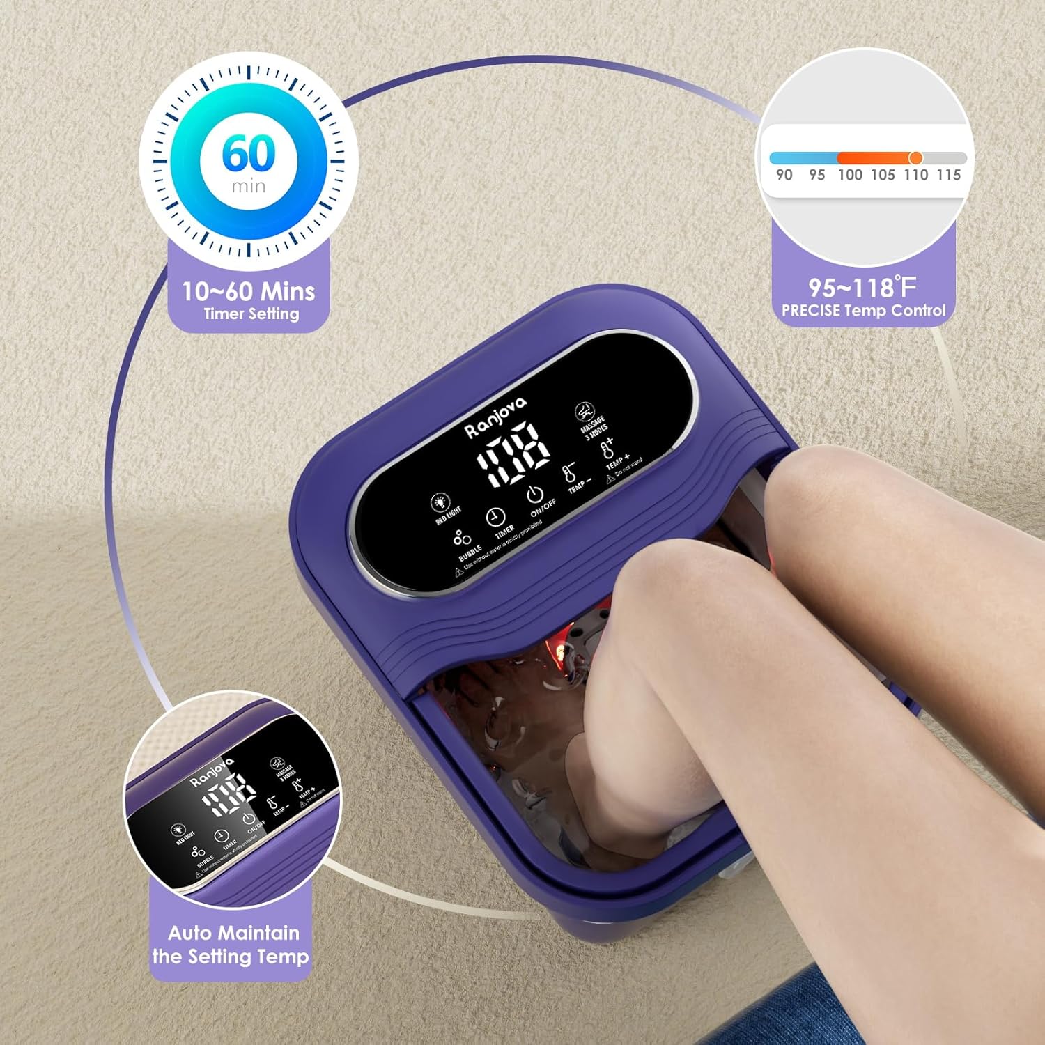 - Precise Temperature Control: The foot spa allows you to adjust water temperature from 95ยฐF to 118ยฐF ,find your most comfortable temp. And this foot bath massager with heat will auto maintain the water temperature and show the setting temp on touch screen