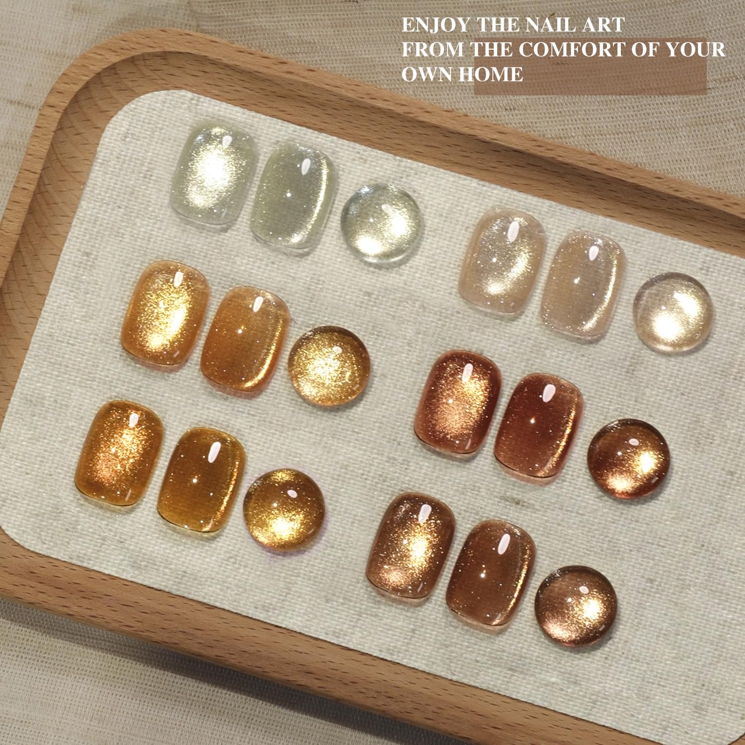 GAOY Glitter Cat Eye Gel Nail Polish Set with Magnet, Gold, Brown, Sliver Holographic Cat Eye, Salon Gel Manicure and Nail Art DIY at Home, Sunshine