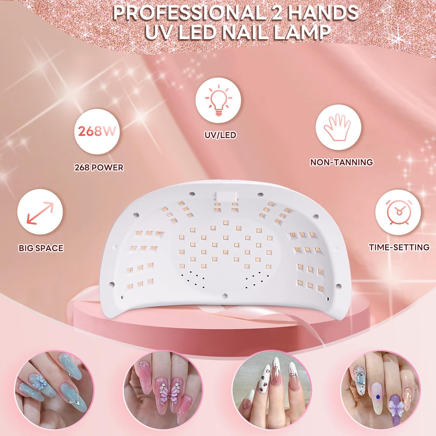 Professional UV Light for Nails, 268W LED UV Nail Lamp for Gel Nail Polish with 4-Timer Auto Sensor, Large Space Gel Nail Lamp for 2 Hands with 69 PCS LED Beads, Nail Dryer for Salon & Home