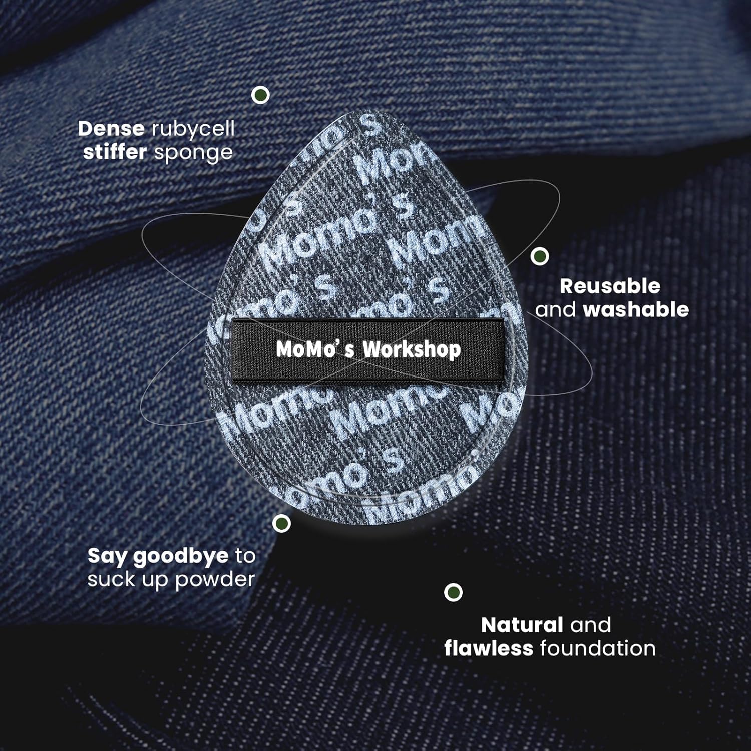 - 【Natural & Flawless Makeup】 The black denim makeup sponge puff is made of rubycell and stiffer sponge with super bouncy, effectively applying cosmetics and bringing you natural and flawless effects.Whether you're applying makeup for work, commuting, or traveling, this puff stays put for quick, controlled touch-ups on the go.