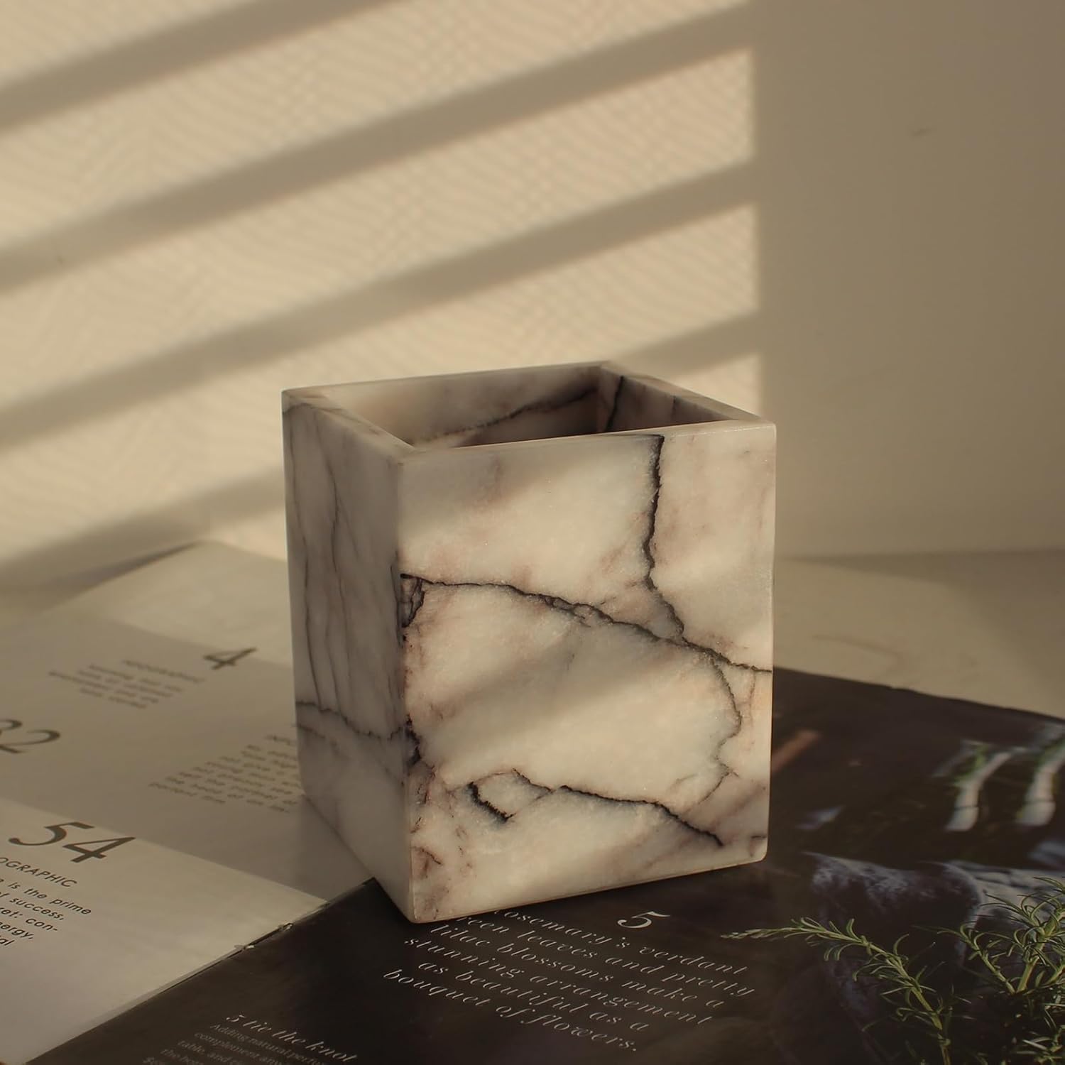 - ➤Multi-Function: The effective construction allows you to preserve your toothbrushes, toothpaste, Shaver, makeup brushes, pens, and miscellaneous items. Elegant marble design looks fabulous and sophisticated in your bathroom