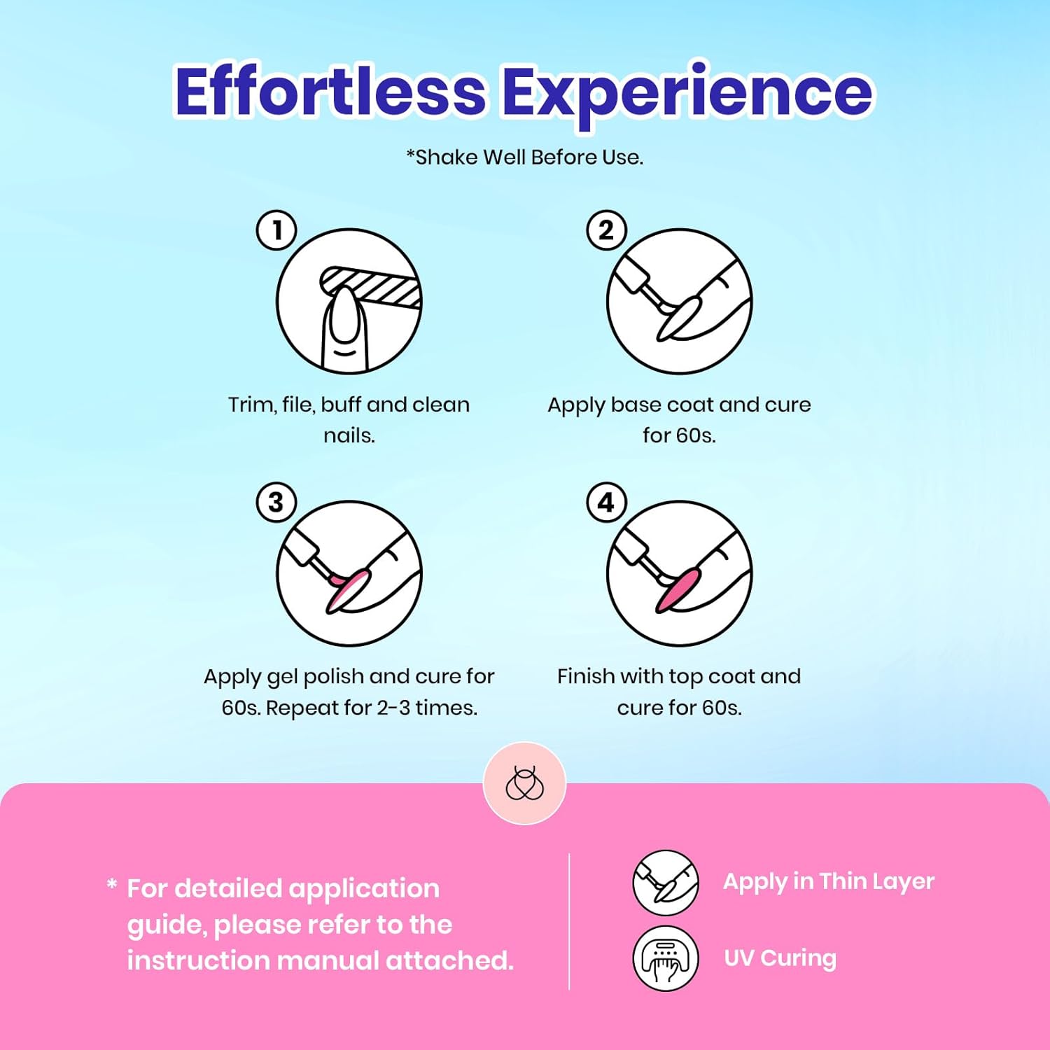 - Long-lasting Shine: Can last for at least 28 Days with our UV/LED Soak off Gel Nail polish. With quick curing under a lamp and proper application techniques, your nails will maintain a vibrant shine. Cure for 60-120 seconds for optimal results.