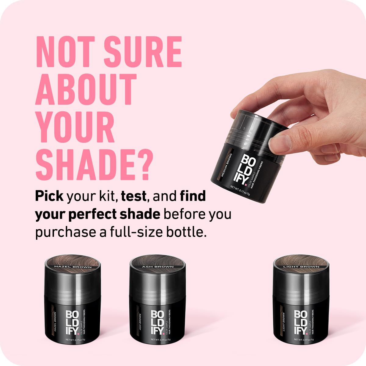 Boldify Hair Fibers Color Sample Kit - Fill In Thinning and Fine Hair for an Instantly Fuller, Thicker Look - 14 Shades for Women & Men - Light + Medium Browns