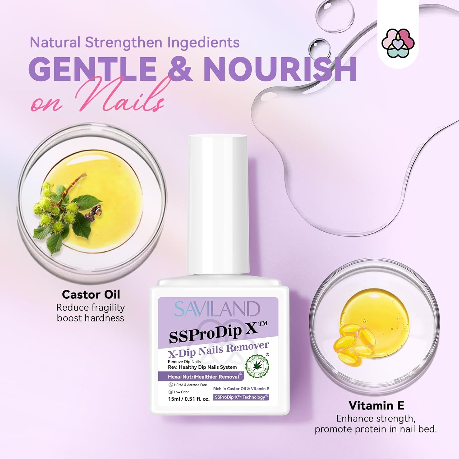SAVILAND Dip Powder Remover Kit 2Pcs: 15ml Gentle & Safe Dip Nail Remover With Cuticle Oil Nail File Tools No Soak or Wrapping Removal Easy Remove at Home Gift For Women