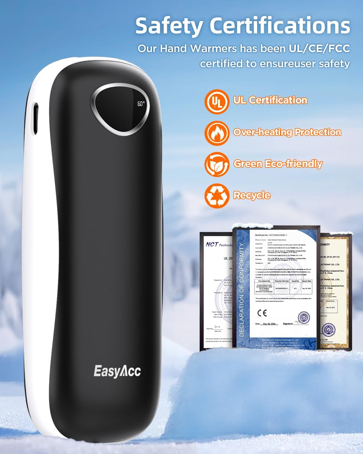 • 【A Heartfelt Gift for Cold Hands and Raynaud's Patients】Warm their hearts and hands with EasyAcc 2 pack rechargeable hand warmer, the perfect gift for those with Raynaud's disease or perpetually cold hands. Lightweight and rechargeable, it's ideal for home, work, or on-the-go. Give the gift of warmth and show your loved ones they’re truly cared for—because everyone deserves a little extra comfort this winter!