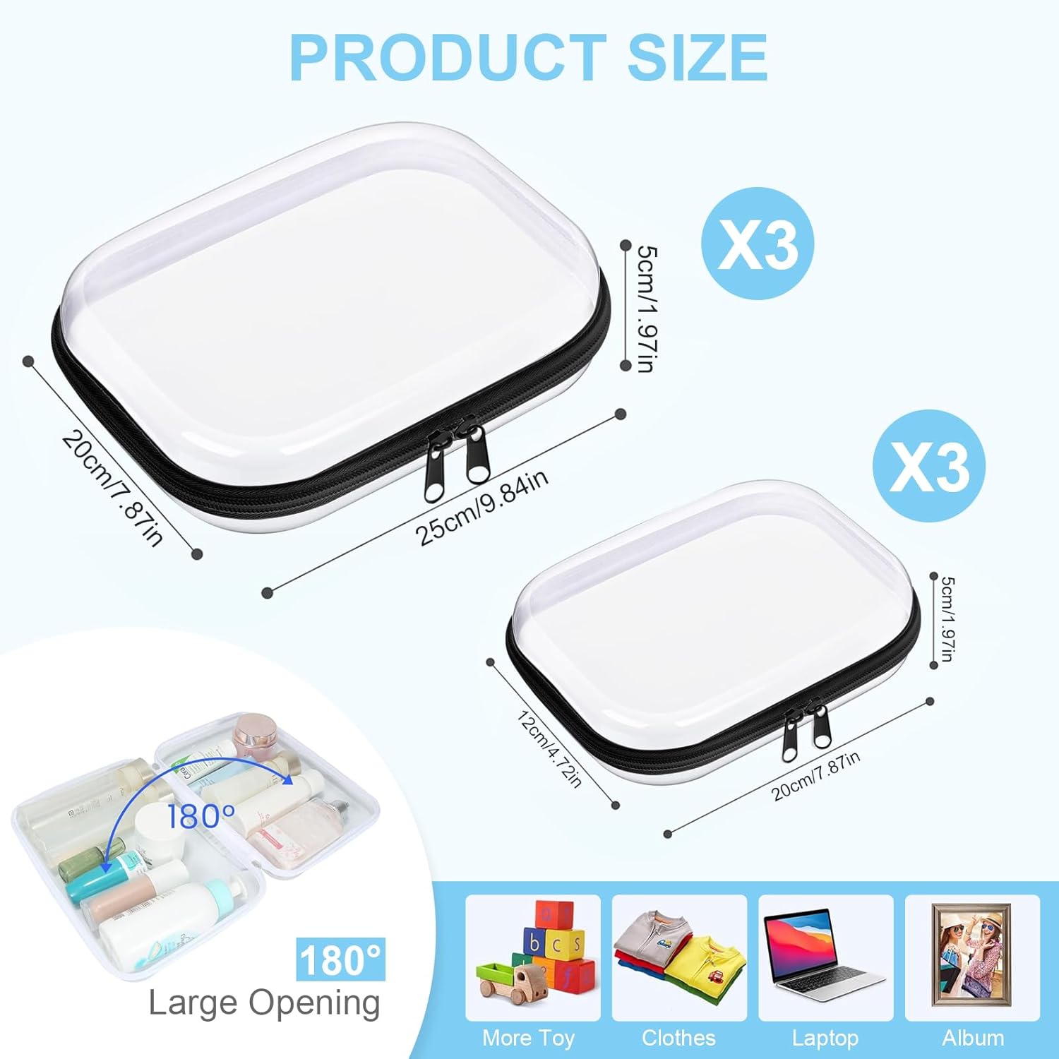 • Ample Storage Space: The package contains 6 transparent hard zipper boxes in two sizes, medium 10 x 8 x 2 inches, small 8 x 4.7 x 2 inches; you will have enough space to store and organize multiple items, keeping your items tidy.
