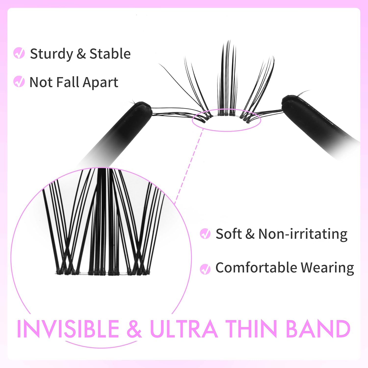 - False eyelashes bands are made with new materials and technology so that the bands are thinner, softer, and harder to fall apart. The wispy lash clusters are handmade with high-quality PBT fibers to ensure that the lashes are soft, lightweight, comfortable to wear, and look more naturally fluffy