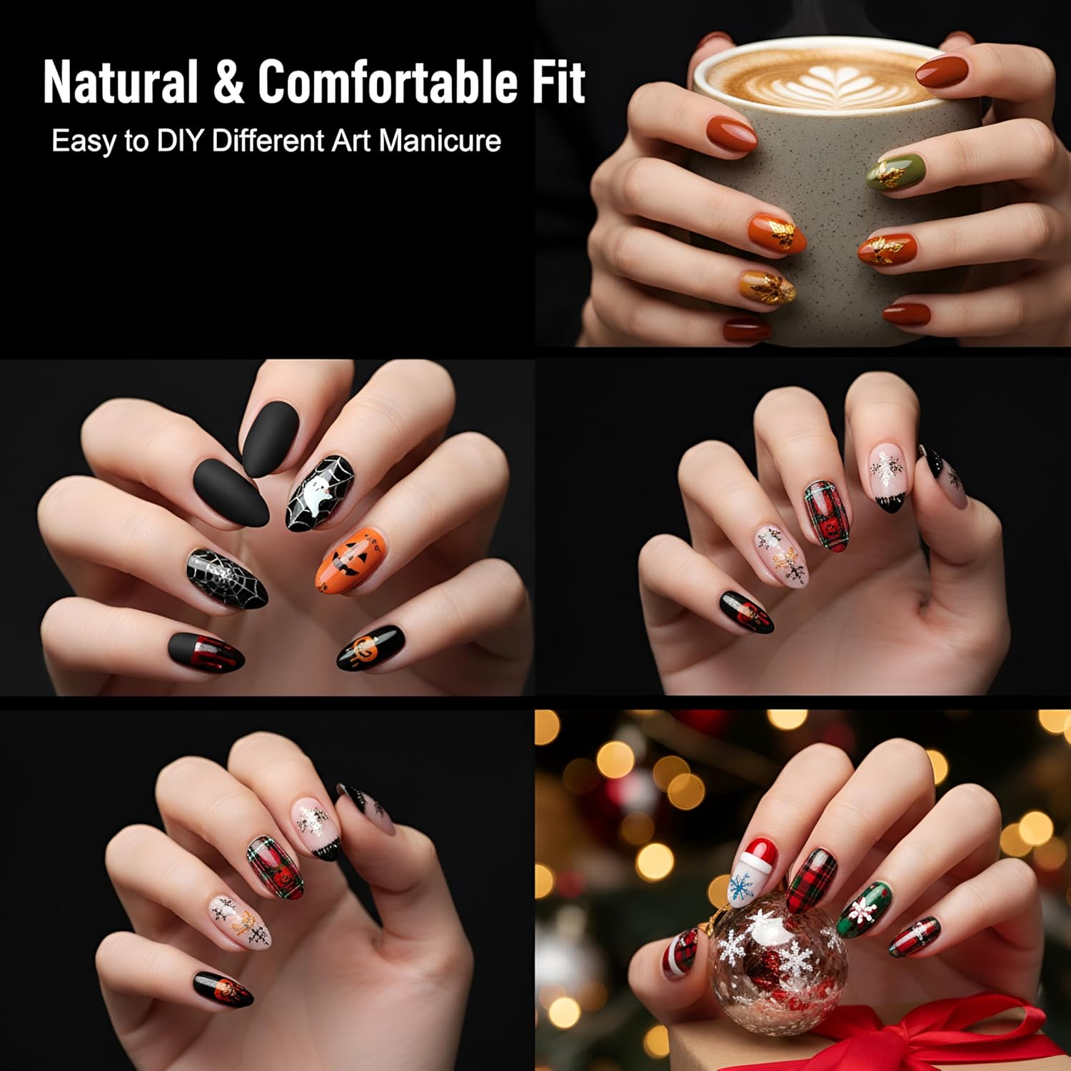 - 【Premium Quality Almond Nail Tips】Crafted with premium acrylic nail tips in a short almond shape, this acrylic nail kit delivers salon-quality results at home! The ultra-thin, breathable design ensures 4-week wear without lifting, while the press-on nails short style requires zero glue or UV lamp—perfect for DIY nail kit beginners.