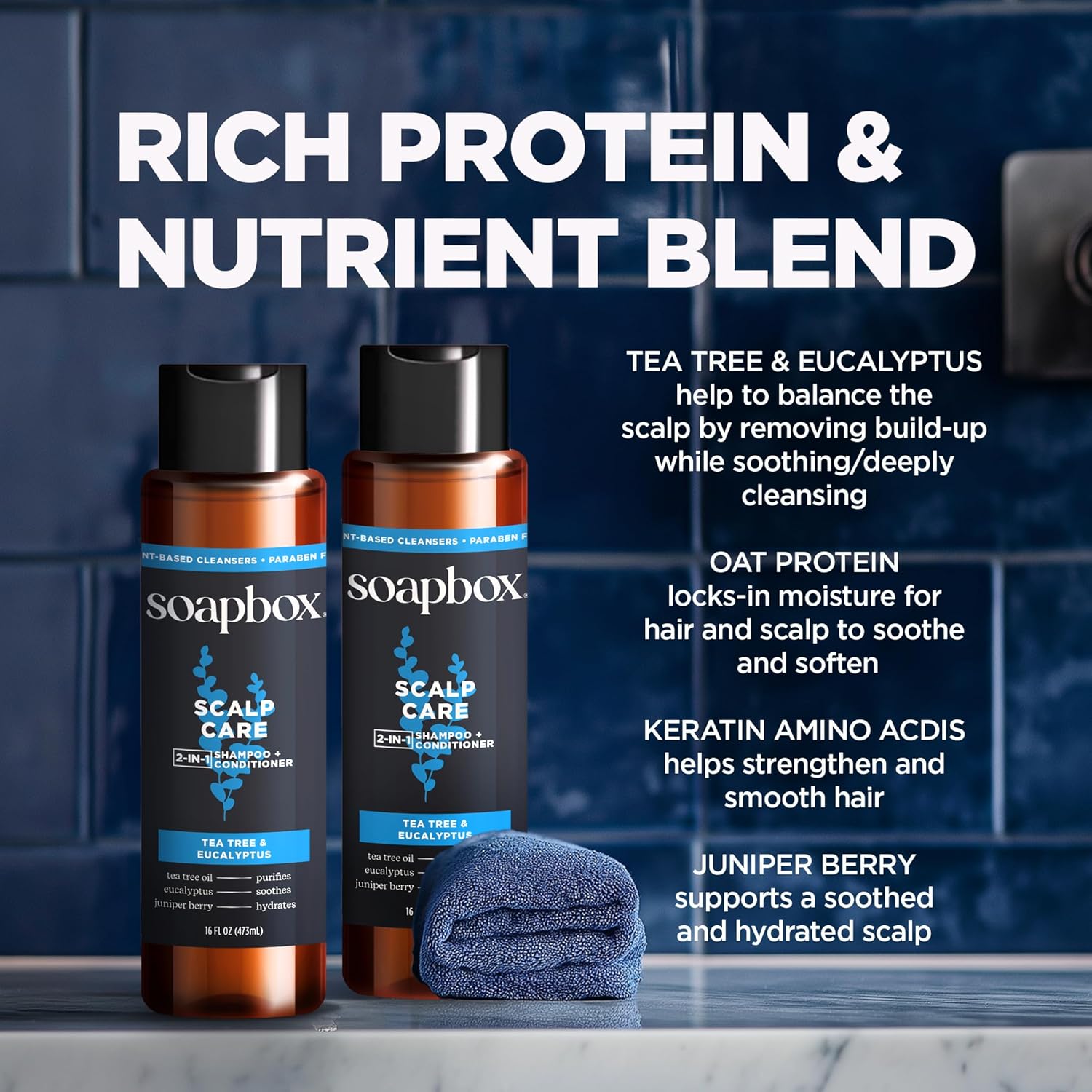 Soapbox Men's Scalp Care 2 in 1 Shampoo and Conditioner For Men, Natural Mens Shampoo and Conditioner, Tea Tree & Eucalyptus, 16oz