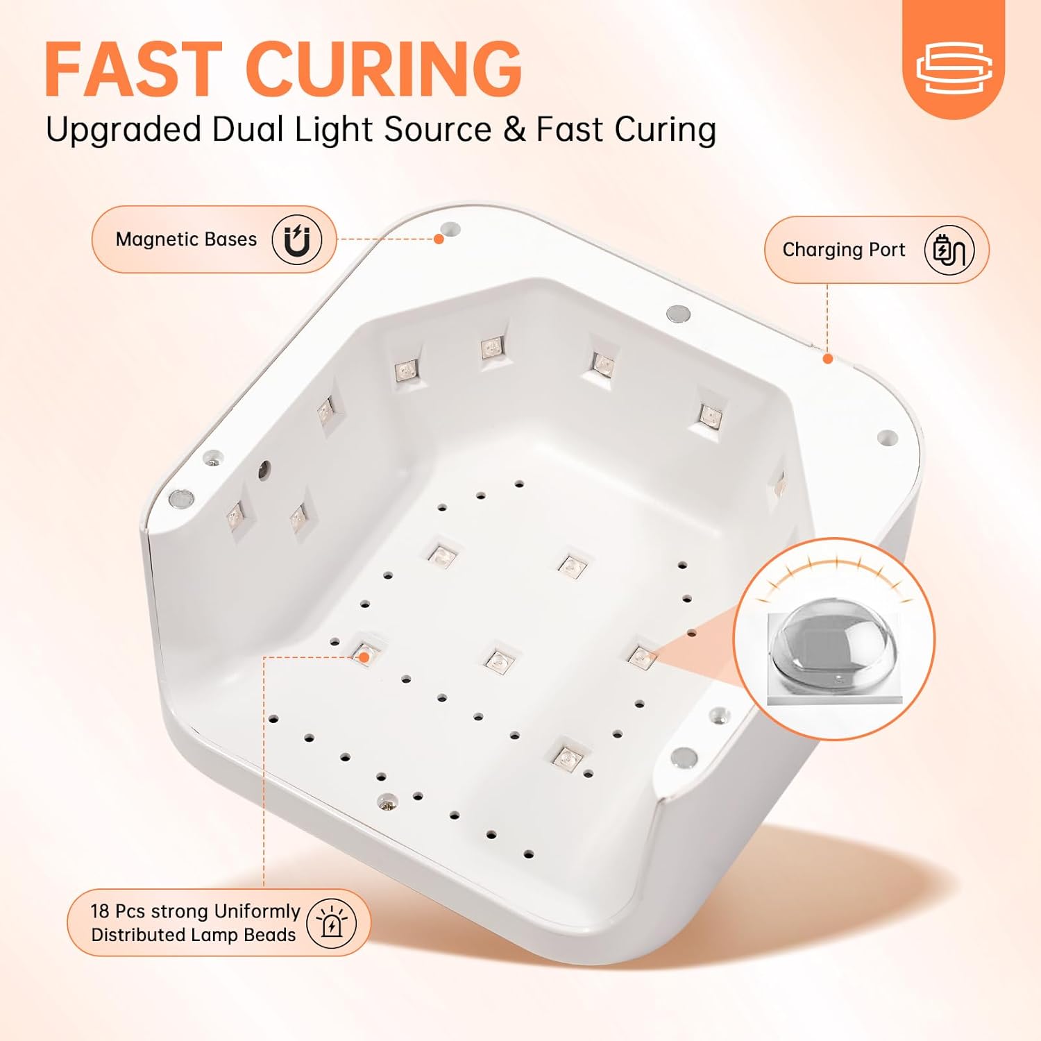 - Fast Curing All Nail Polishes: Different brands of nail polish cure at different speeds. CHRISTINE SHELLY gel lamp equipped with 18 dual light source lamp beads, the uv light for nails fast cure all gel nail polishes, base coat, top coat, color gel, hard gels, builder, acrylic, sculpture gel, gem glue etc. (not for regular nail polish). You can do a beautiful manicure at home or at the salon