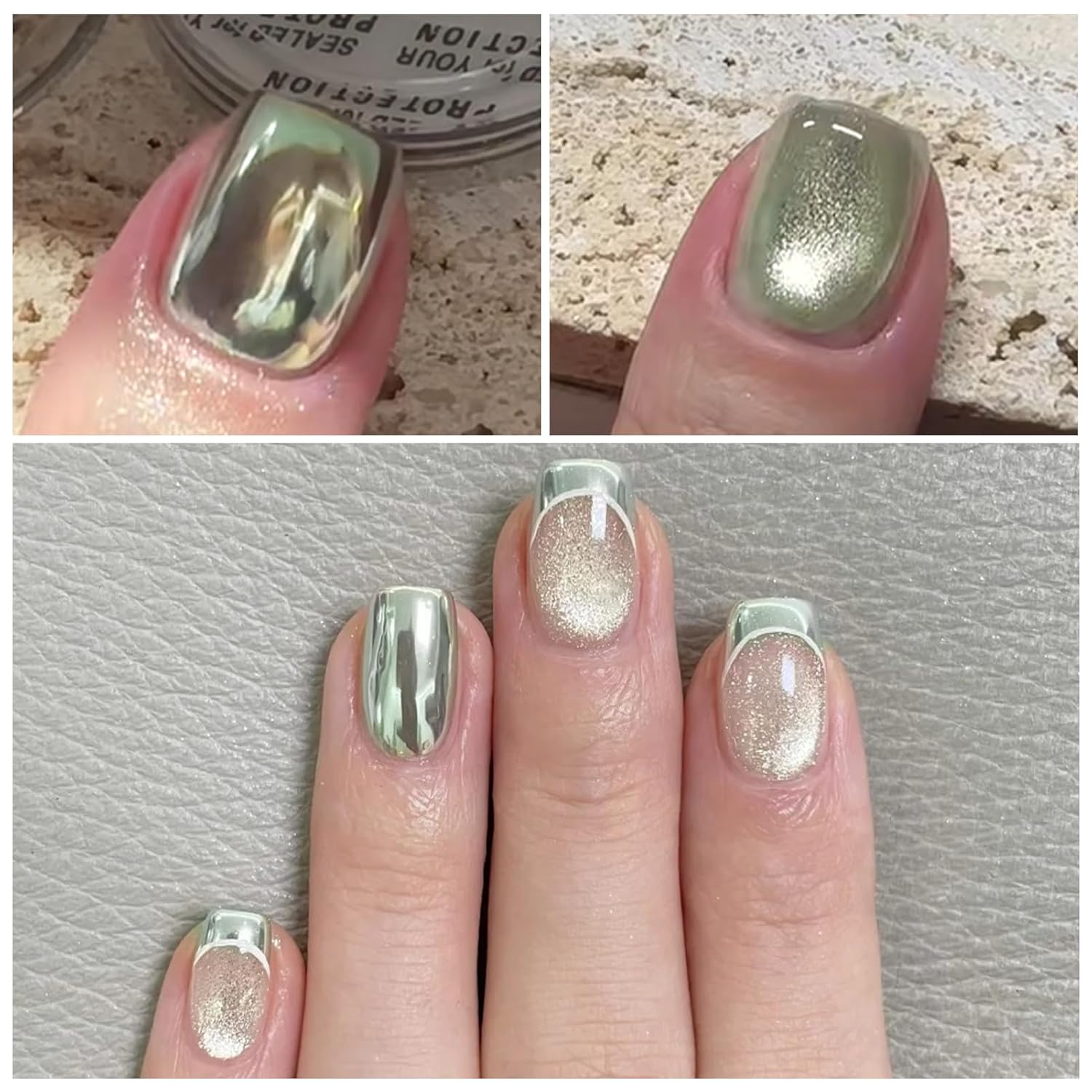 - WIDE USAGE: The nail powder is suitable to be applied on U V gel nails, acrylic nails, natural nails, etc., making it a helpful DIY tool for nail art design. Experimenting with different nail polishes can also add more fun when using the green mirror cat magnetic eye effect powder.