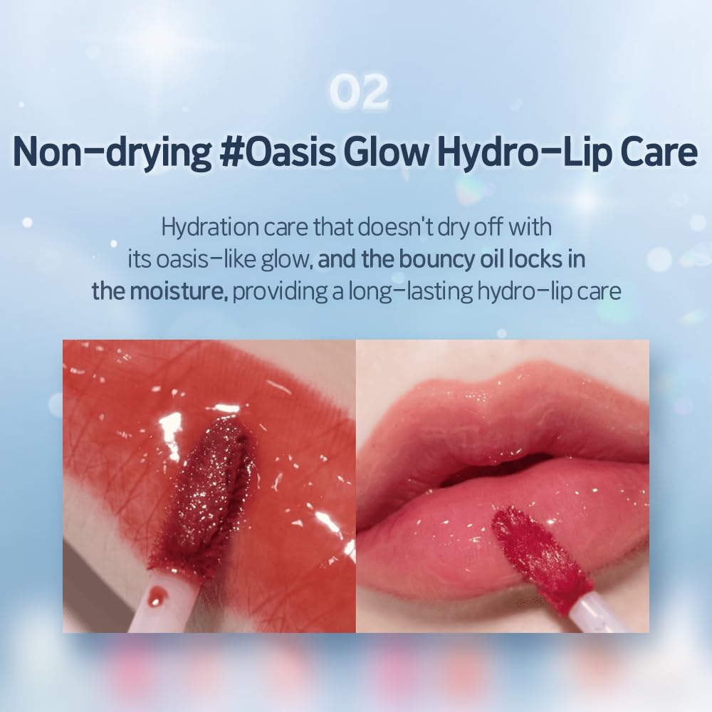 ETUDE Over Glowy Lip Stain Tint #14 Hey Pearl | Non-Sticky Vegan Lip Tint | Moisturized & Long-lasting Lip Gloss | Daily Tint for Dry Lips, Korean Makeup