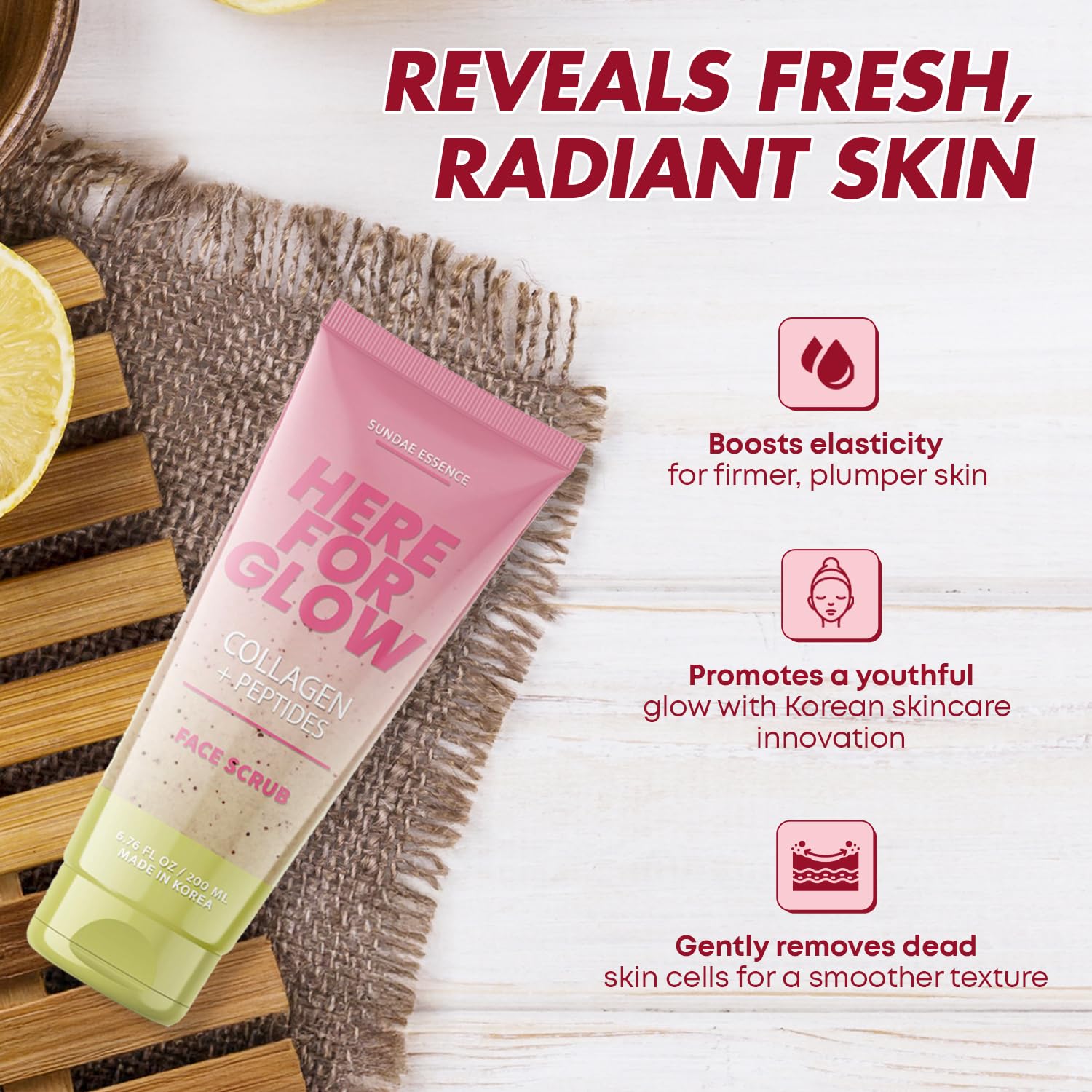 Collagen Facial Scrub - Dermatologist Tested, Anti-Aging, Hydrates & Improves Firmness, Korean Skin Care, 95% Natural, Clean Beauty, Non - GMO, Cruelty - Free - 1 Pack