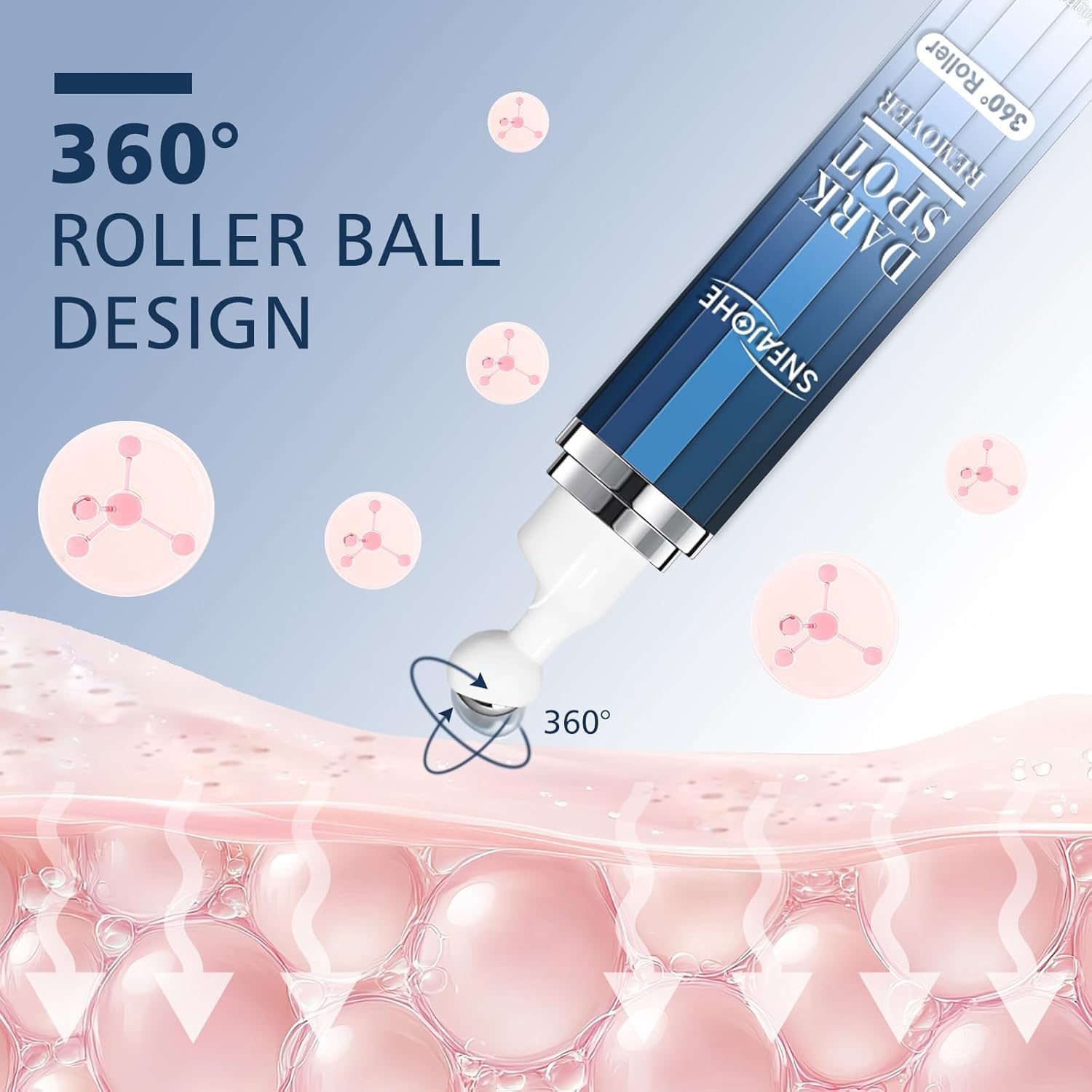 - 【Innovative 360° Roller for Enhanced Effect】The unique 360° Roller Massage Ball applicator ensures even distribution of the serum and gently massages your skin. This promotes better absorption of the active ingredients, maximizing the effect of the dark spot remover and helping you achieve faster and more visible results.