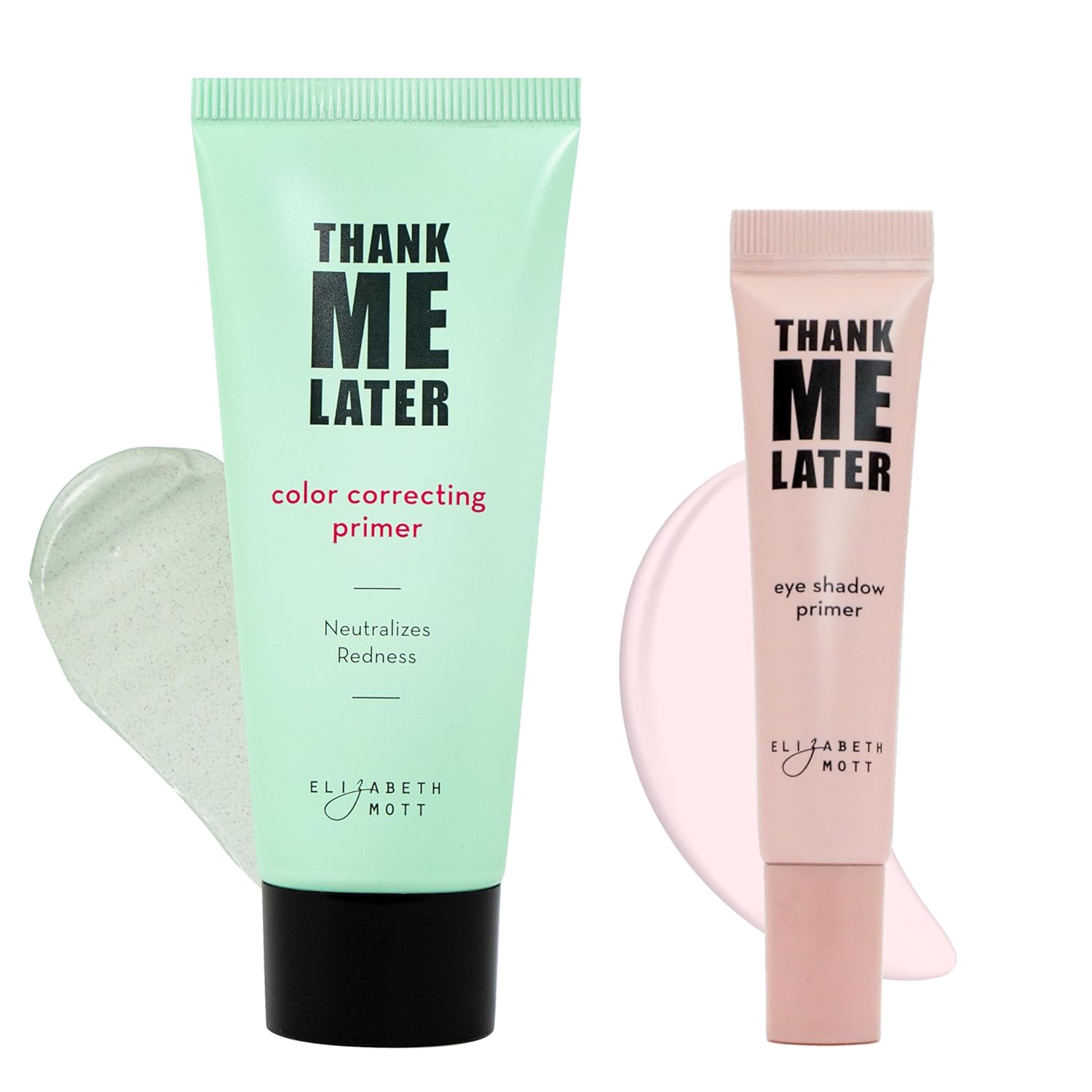 Elizabeth Mott Thank Me Later Color Correcting & Eye Primer Duo – Face Primer with Niacinamide for Redness Control & Smooth Makeup Base – Eye Primer for Long-Lasting, Crease-Free Eyeshadow – 30g + 10g