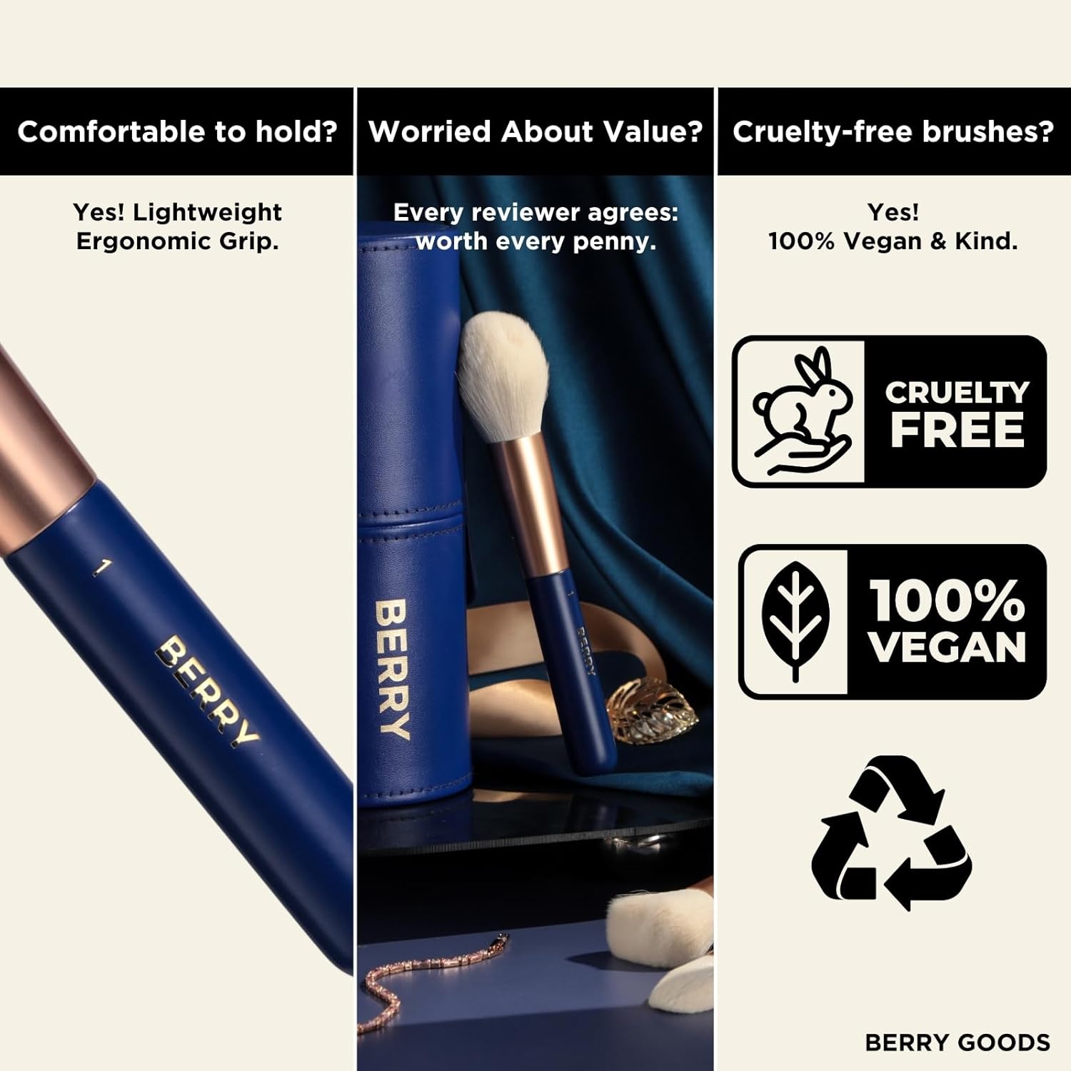 BERRY Blue Premium Makeup Brush Set – 12-Piece Professional Ultra-Soft Synthetic Brushes for Face & Eyes | Foundation, Powder, Blush, Concealer, Eyeshadow – Vegan, Cruelty-Free, Numbered, Travel Case