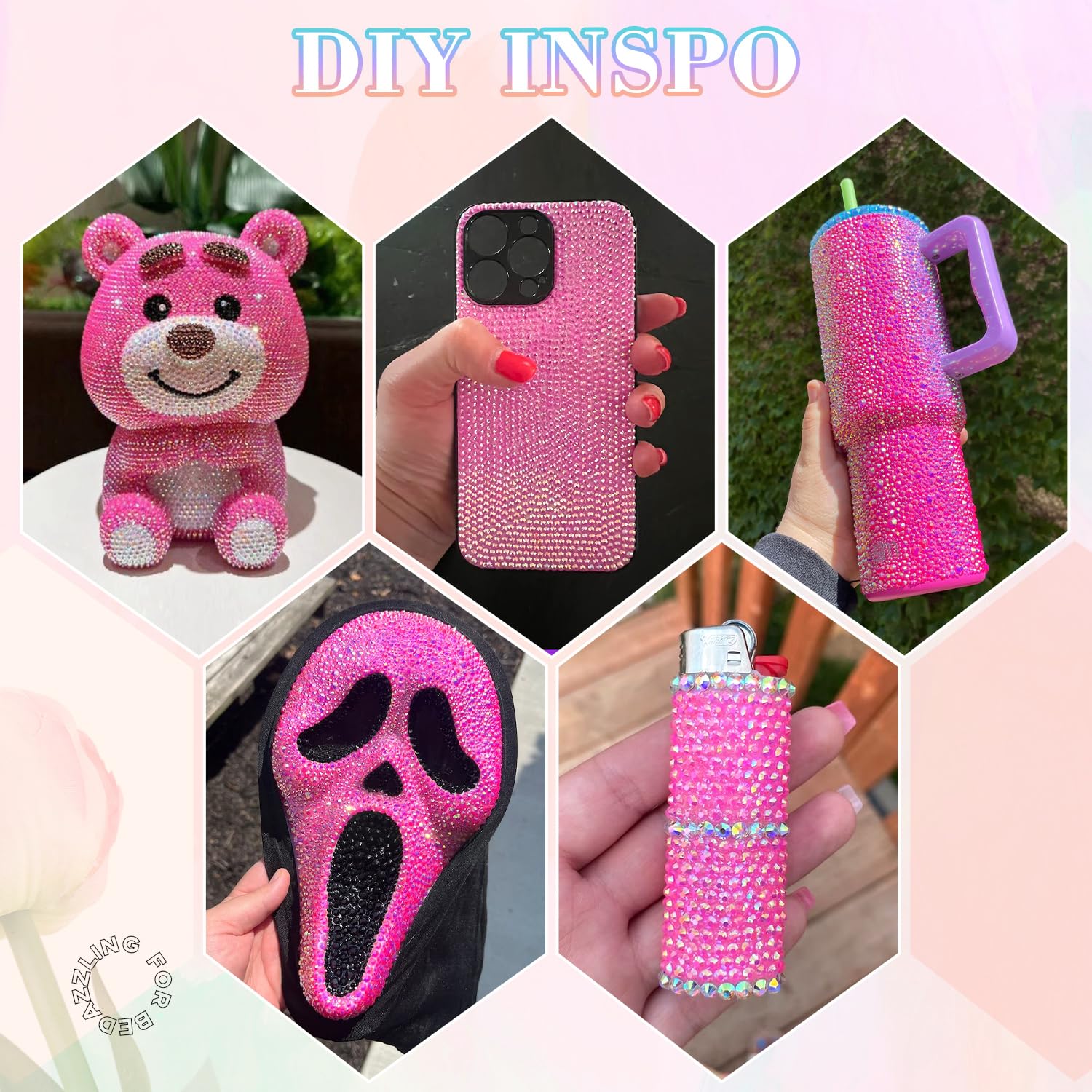- PACKAGE CONTENT -- Include 1 box with 24 grids, featuring a variety of sizes, approx. 25000 pcs bling-out resin rhinestones (Hot Pink AB). 1 tweezers and 1 pickup pen are included for easily picking up of rhinestones. 3 B7000 glue for jewelry making