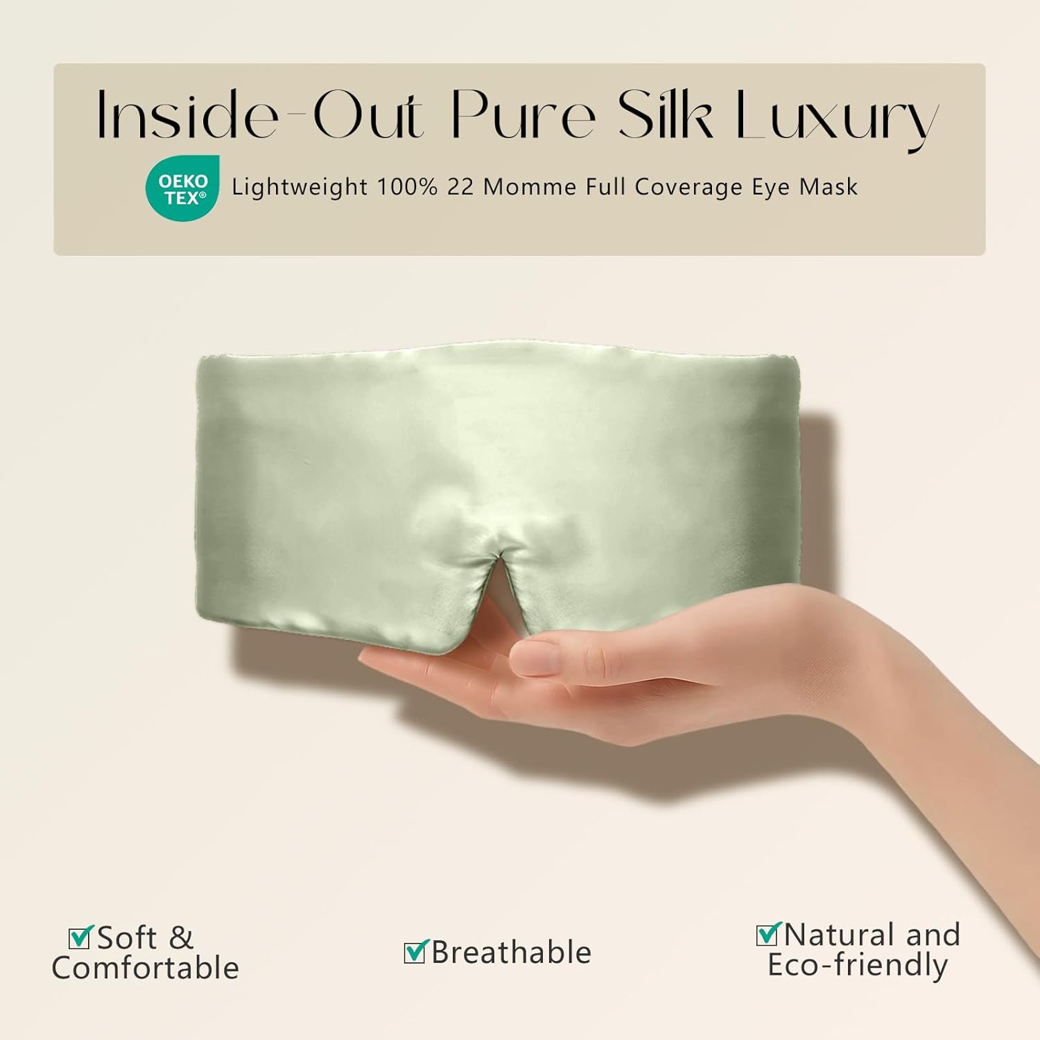 ZIMASILK 100% 22 Momme Mulberry Silk Sleep Mask - Full Silk Filled, Ultra-Soft & Breathable, Face-Hugging Blackout Eye Cover for Sleeping (Sage Green)