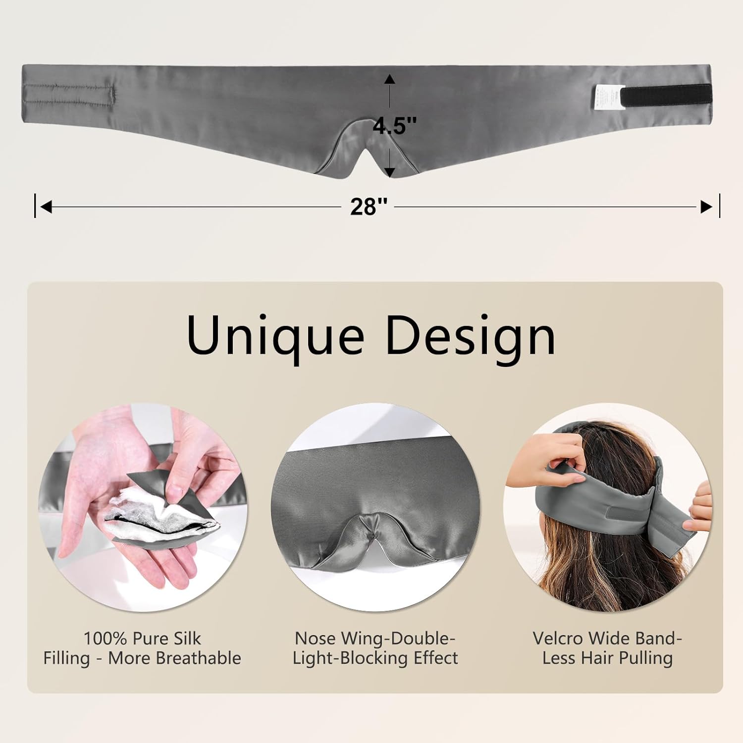 ZIMASILK 100% 22 Momme Mulberry Silk Sleep Mask - Full Silk Filled, Ultra-Soft & Breathable, Face-Hugging Blackout Eye Cover for Sleeping (Blackish Grey)